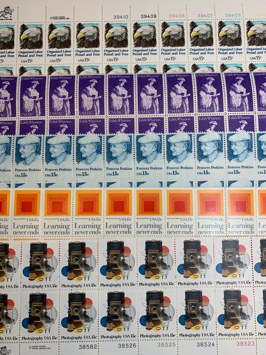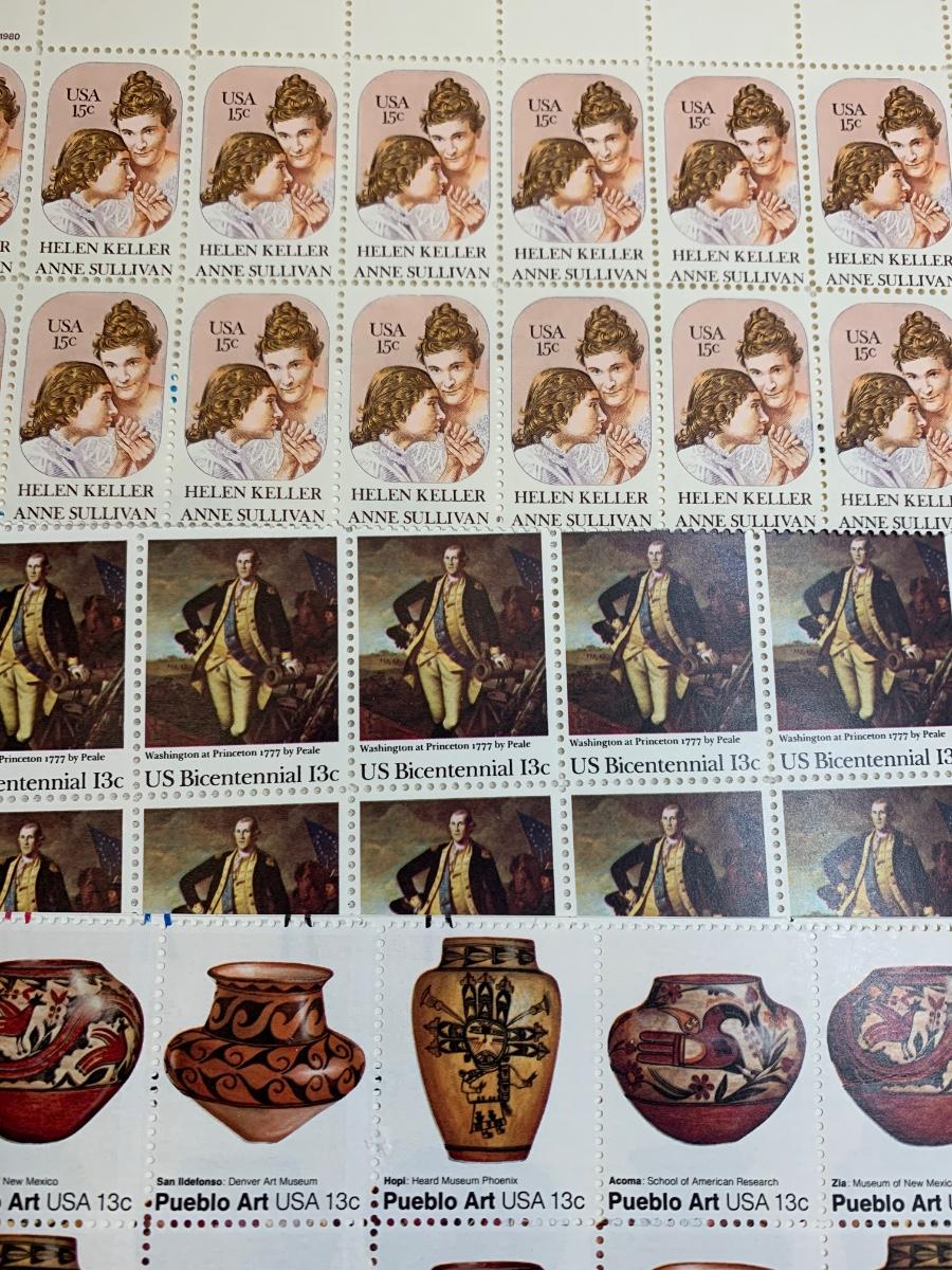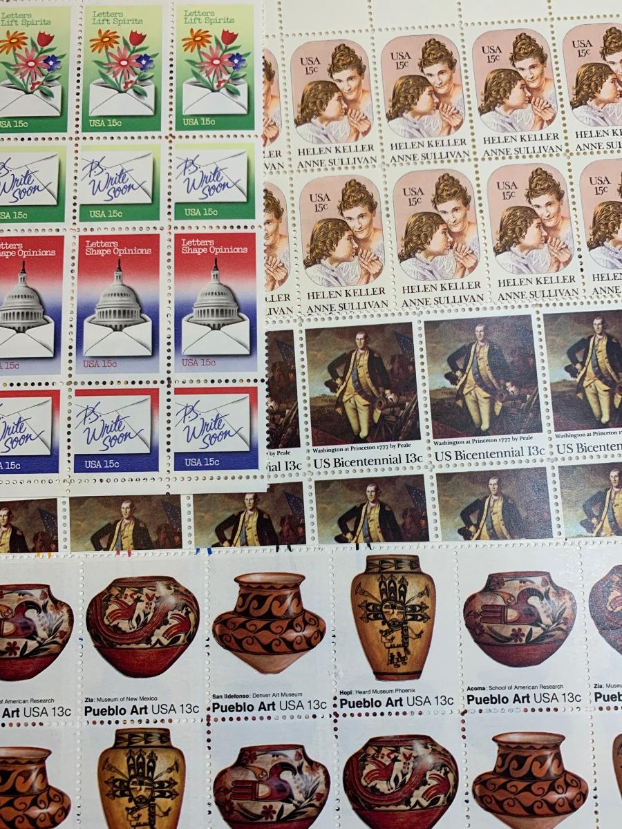 Stamp collection with an approximate Retail Value of $110. There are approximately 878 stamps and range in value from ..08 - .18 cents. The retail pertains to the year these stamps were purchased, but because many of these sheets and/or loose stamps are no longer for sale and hard to find, they sell well individually online and for more than retail. Please see all pictures as they are the best representation of the items. The pictures show condition, measurements if taken, and what is included in the lot. Due to the large amount that we photograph and the time frame, we are not always able to take measurements. All items unless noted, are pre-owned and have been used. If you purchased furniture, you must bring help. We do not allow one person to carry large furniture out on their own. Bring help, tools and a truck for the safety of our client’s homes, and your personal safety. Company policy. Thank you.
