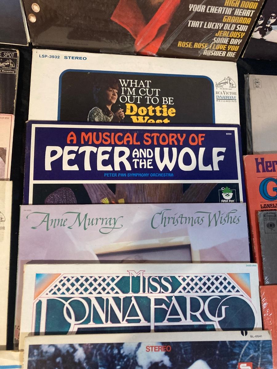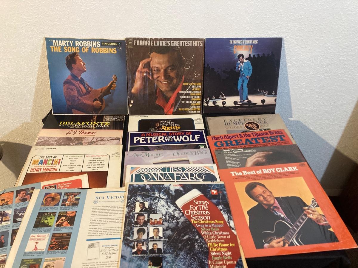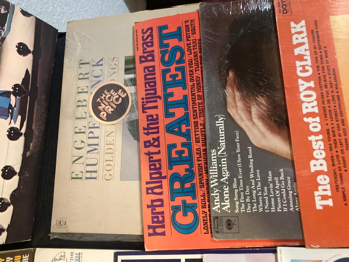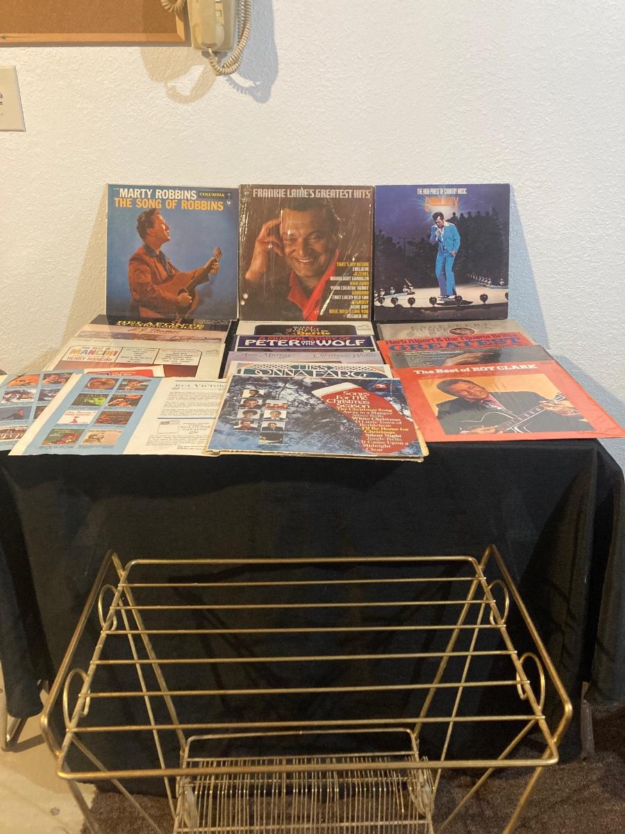 THESE RECORDS HAVE BEEN PLAYED AND MUST OF BEEN SOME FAVORITES THEY ARE IN FAIR CONDTION AS WELL AS THE ROLLING ALBUM CART