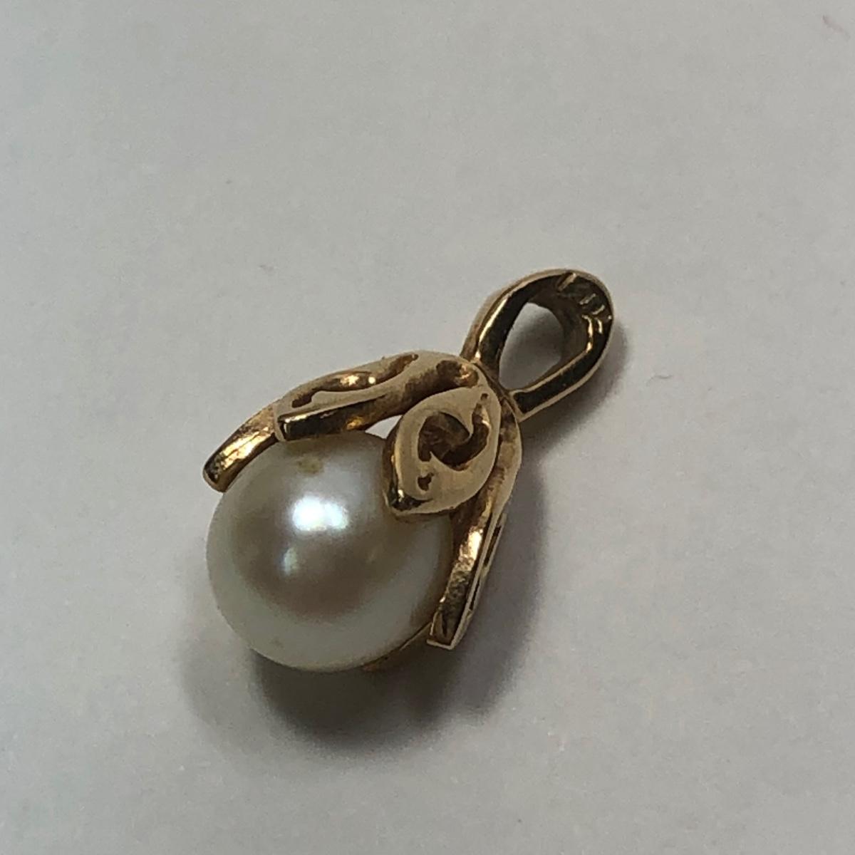 LOT 305: 14K Gold Pearl Pendant (tw: 1.62g)