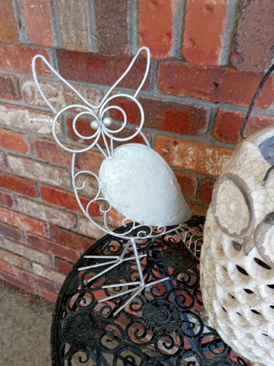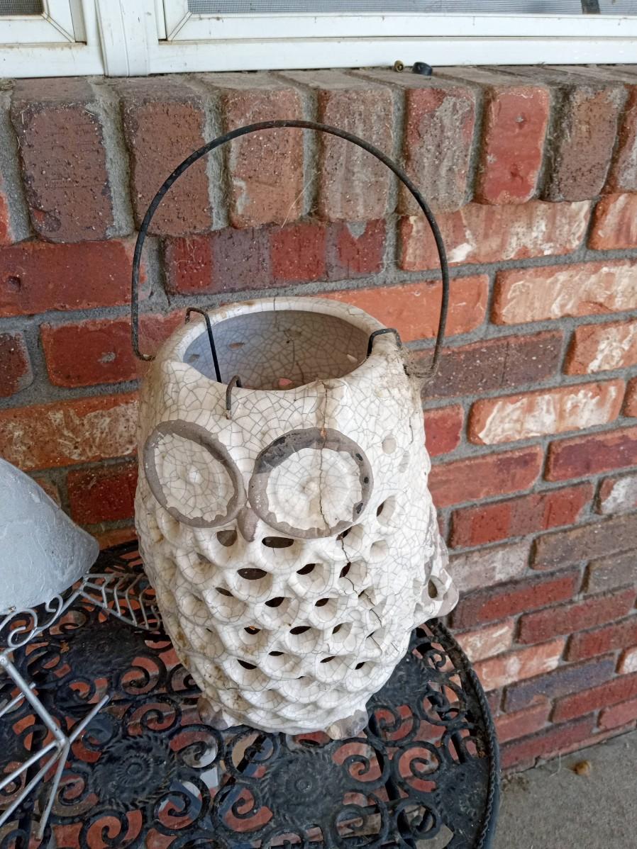 THE TABLE MEASURES 14" X 26", THE OWL LANTERN HAS BEEN REPAIRED