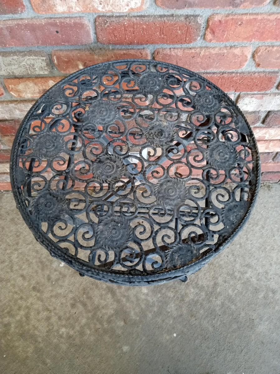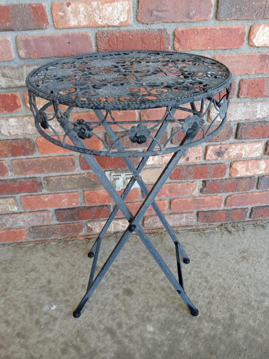 LOT 305  FOLDING METAL SIDE TABLE, OWL LANTERN AND METAL OWL (OB)