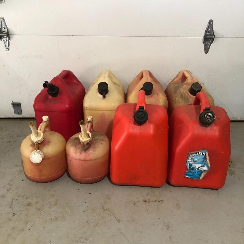 Be prepared for a power outage with plenty of storage for your fuel. Lot includes six five gallon containers and two one and one quarter gallon containers. One small can has liquid in it.. Cannot guarantee what has been stored in these cans and that any pass code for updated can can standards.