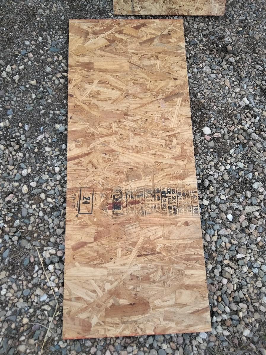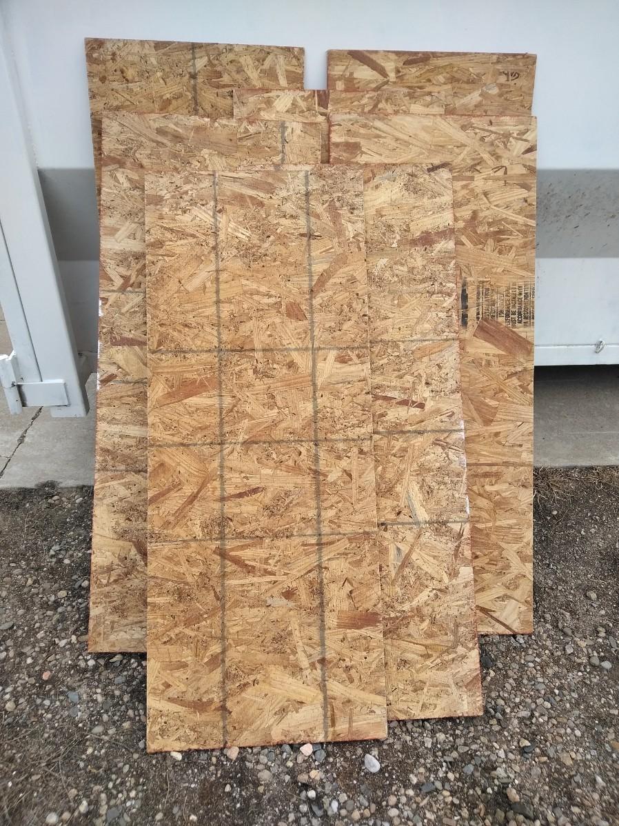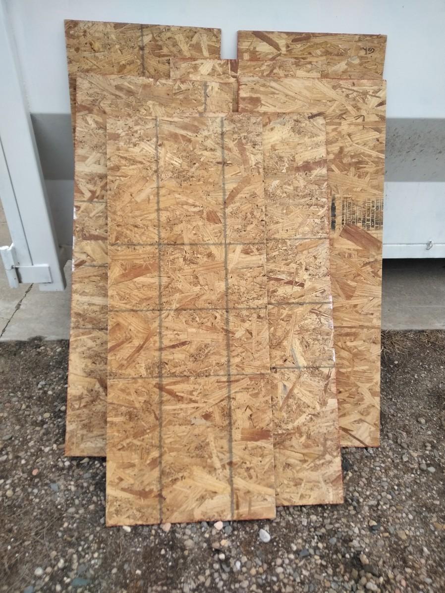 SEVEN PIECES OF OSB SHEATHING MOST LIKLY CUT FOR SHELVING. 1'7" X 4'