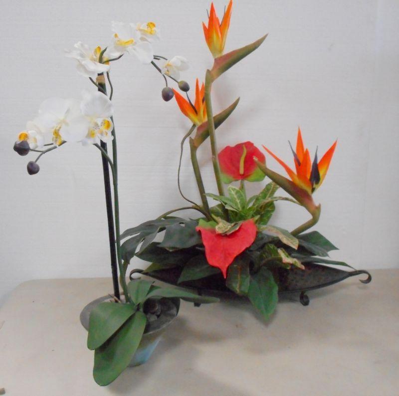 Lot 3055 - 2 Floral Arrangements Orchids + Bird of Paradise