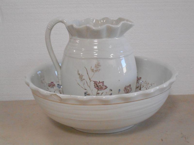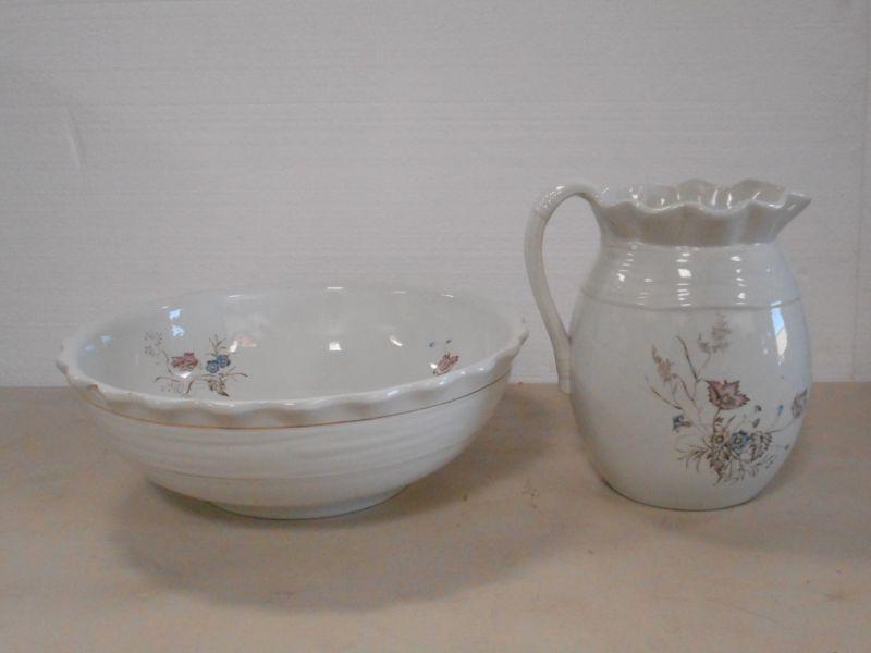 Lot 3059 - Two Piece Lot of Ceramic Iron Stone Basin + Pitcher