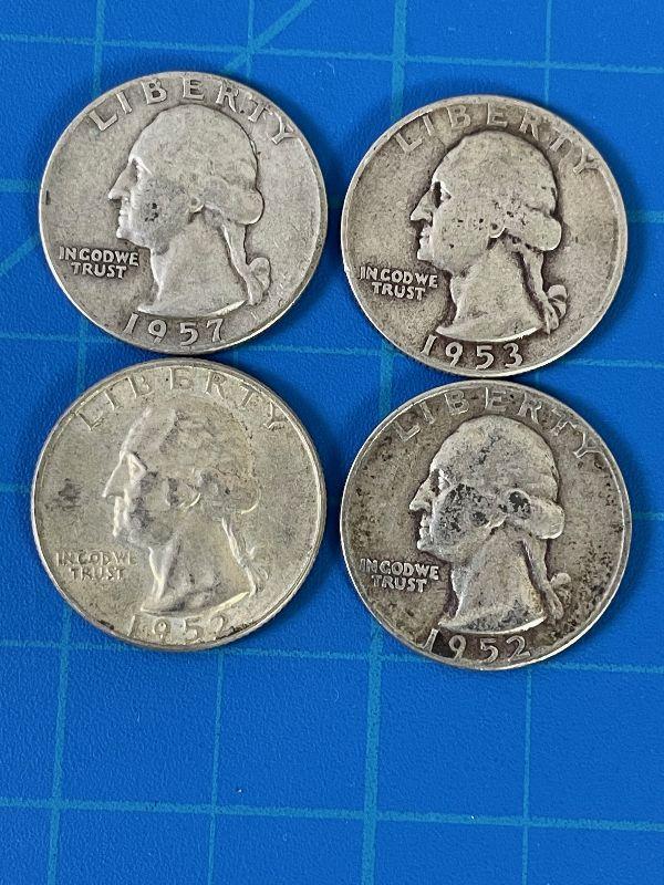 Lot #306 1950's 90% Silver Quarters Circulated Condition (4)
