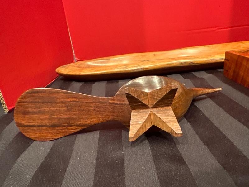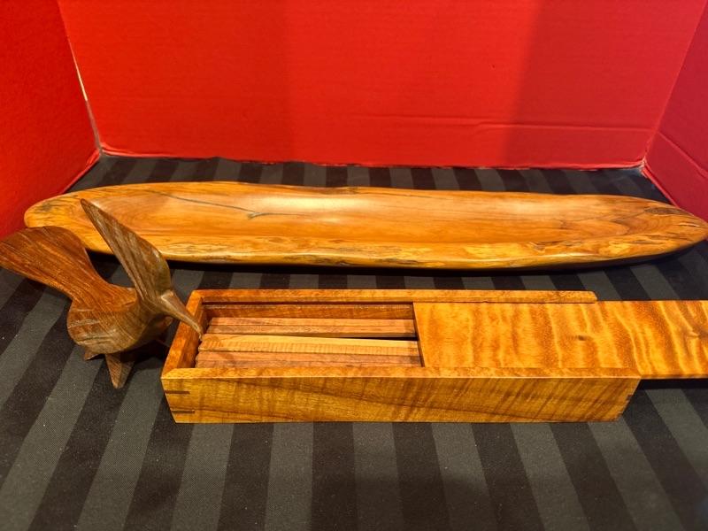 1 handcrafted long wood tray, 1 wood chopsticks box