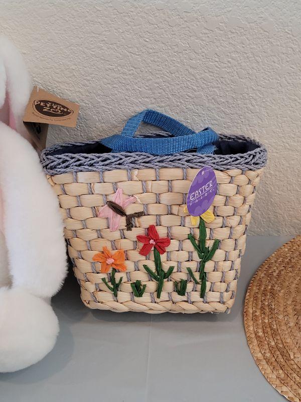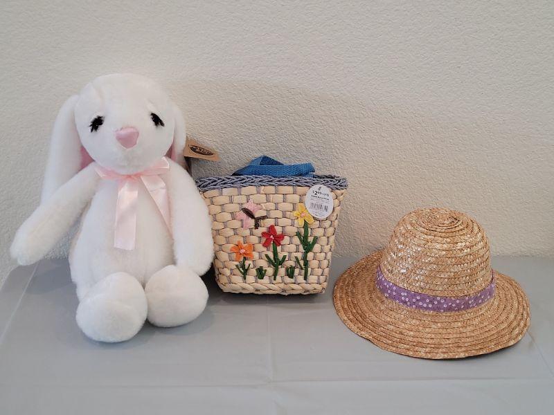 Lot 306: Girls Straw Hat and Straw Purse with Petting Zoo Plushie Bunny with Eyelashes