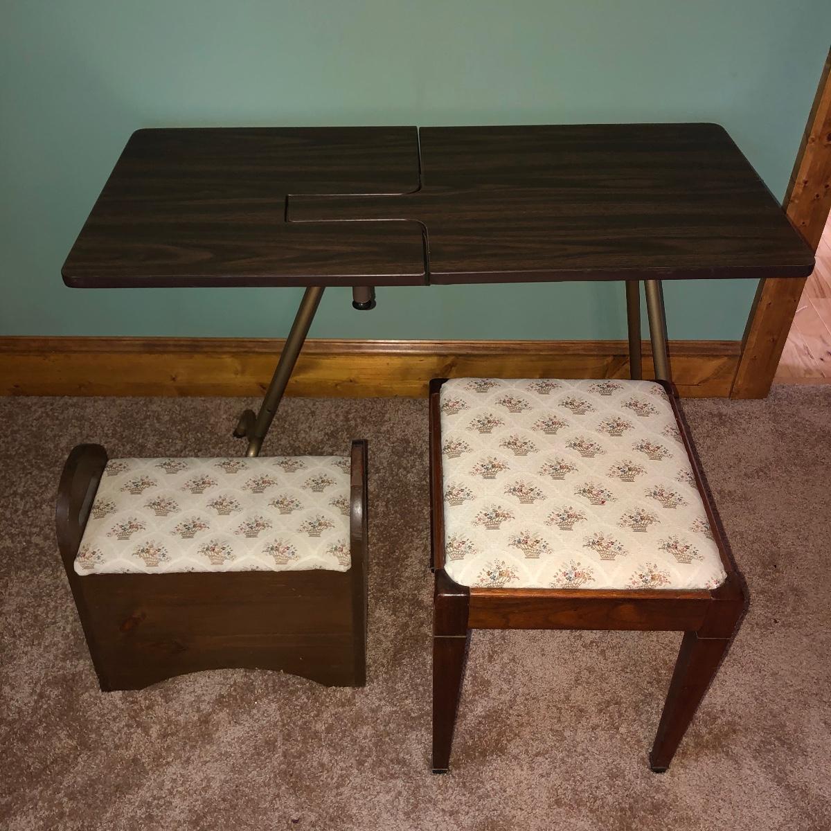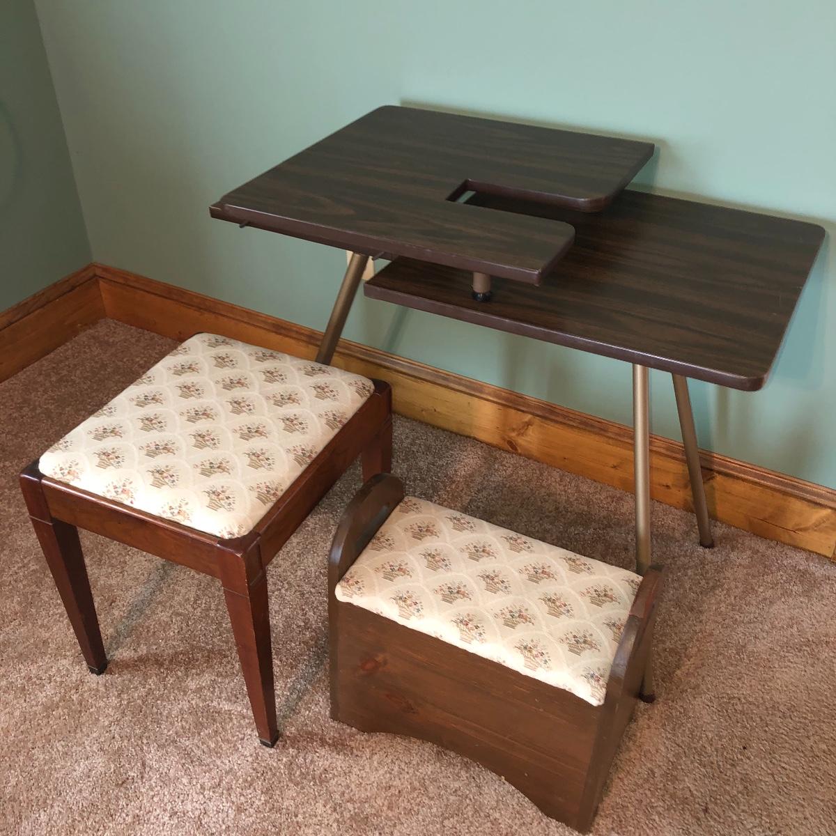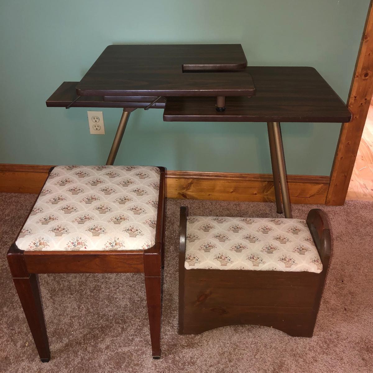 Lot 306 - Sewing Table, Stool, and Seat