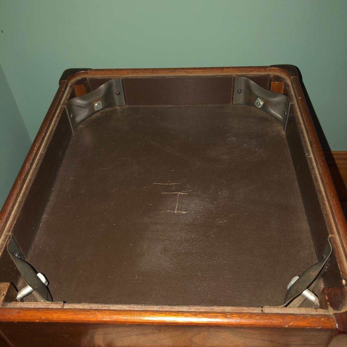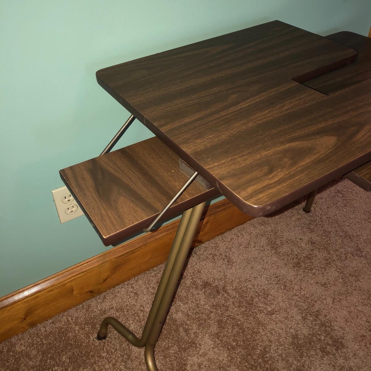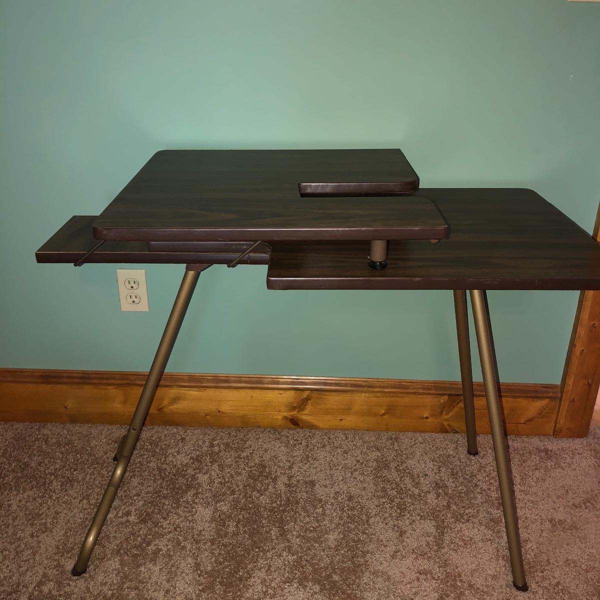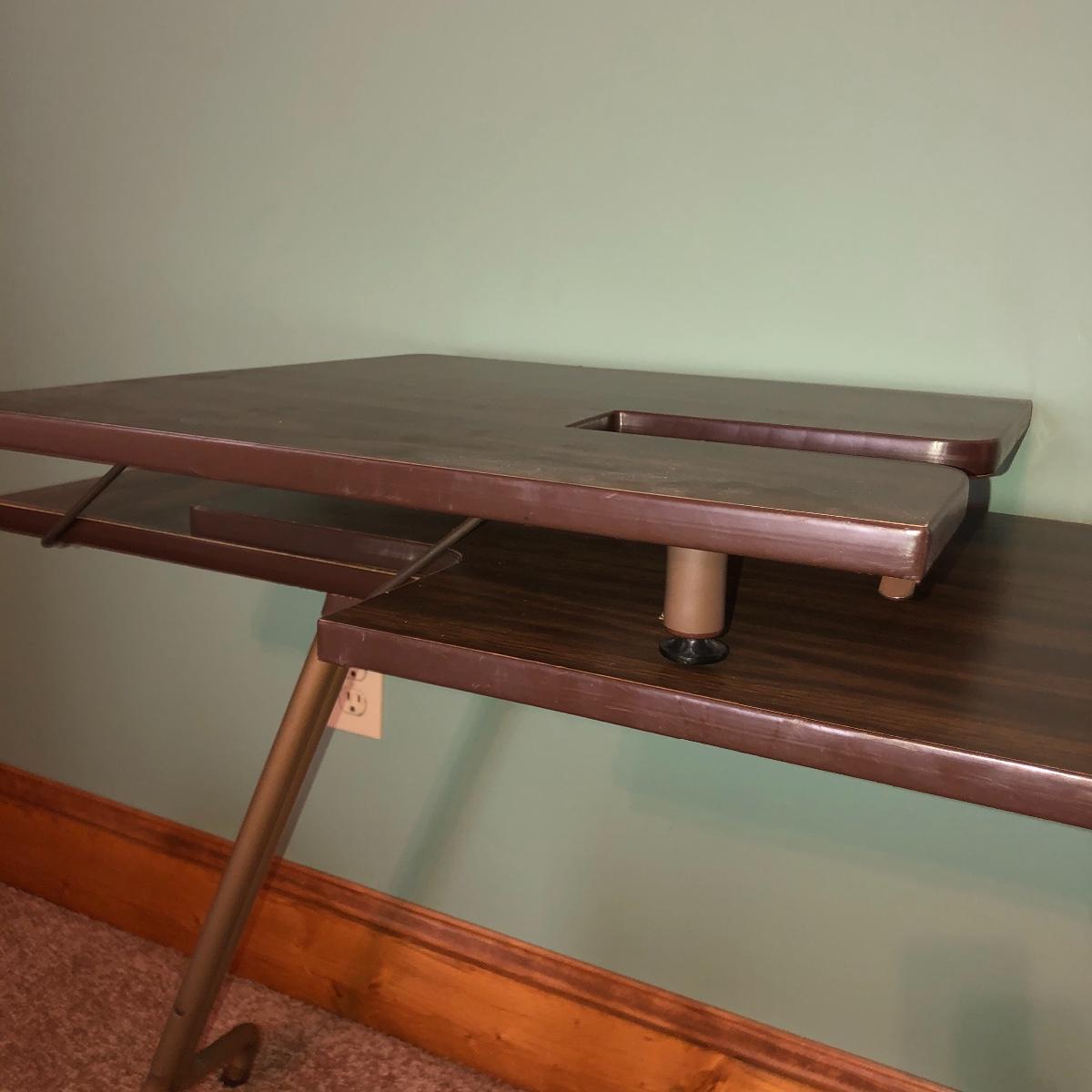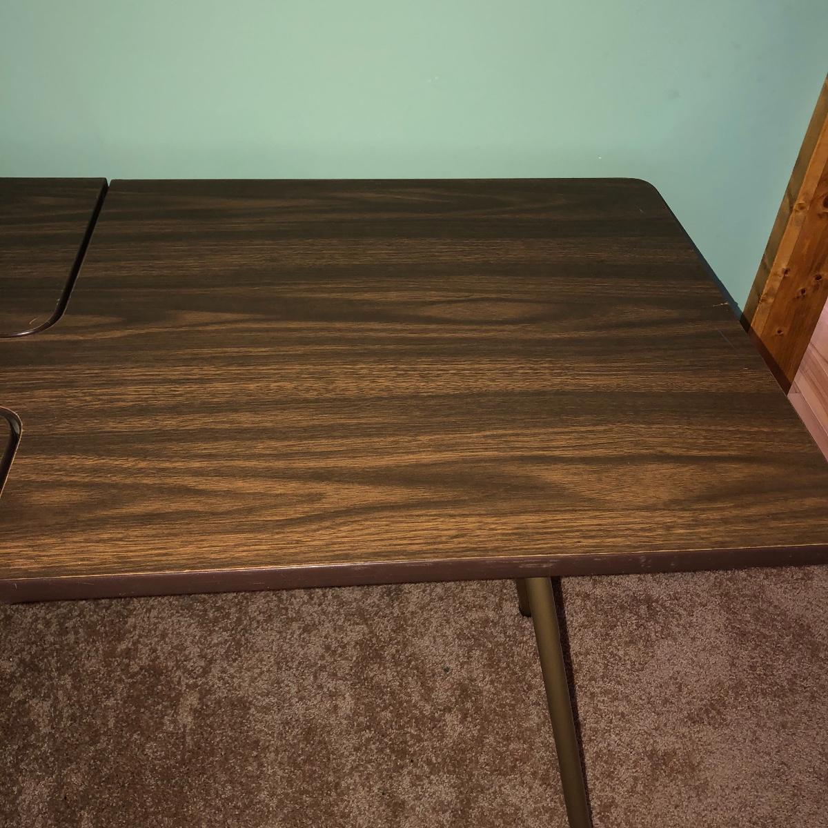 Looking to upgrade your craft space? This trio of sewing furniture might be just what you need. The sewing table in this lot is 42” x 20” x 27” in its flat-surface position, one half of the table can be lifted to create a two-leveled workspace. It has metal legs that are retractable for portability. Also included is a wooden sewing stool with a removable top for small item storage. It has beige upholstery with imagery of flowers in baskets. With matching upholstery, there is a small darker wood seat with handles on either side. Elevate your sewing and crafting with a new sewing table and seating to keep you comfortable while you work.