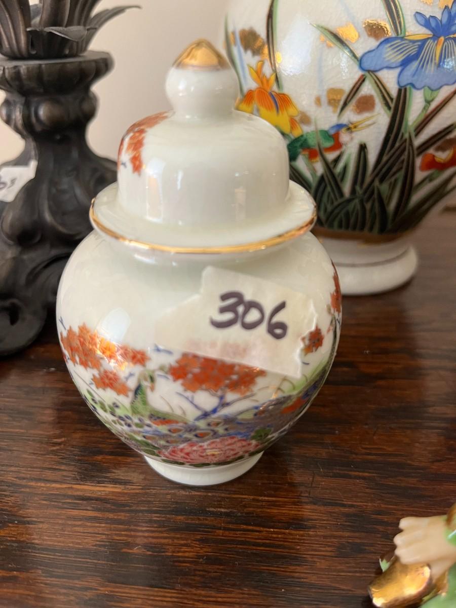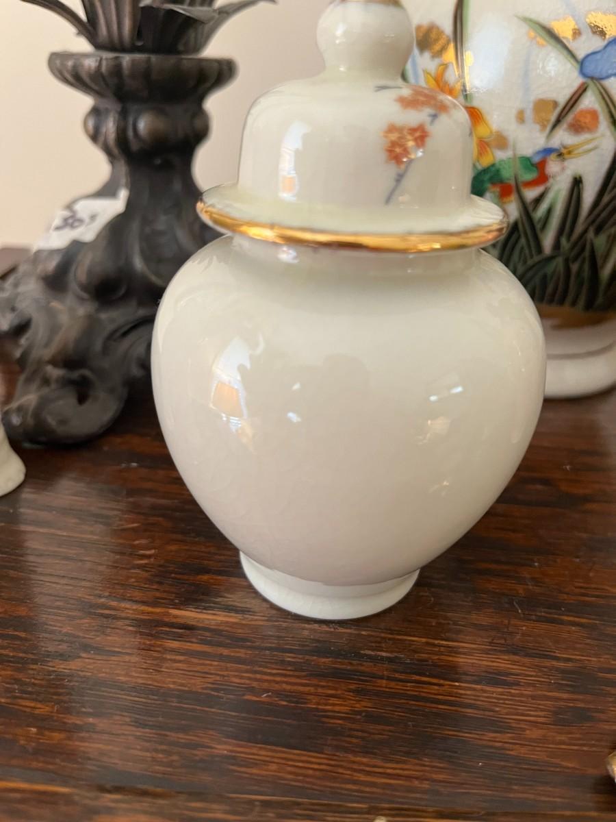 Very Small Ginger Jar with Lid Orange flowers - Lot 306