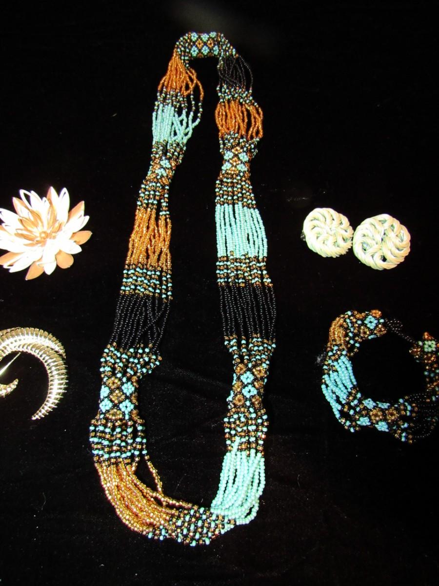 SEED BEADED MULTI STRAND NECKLACE AND MATCHING BRACELET