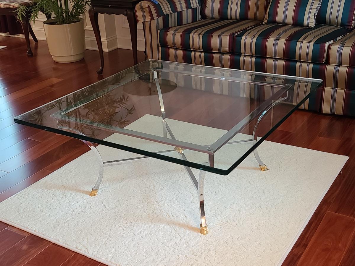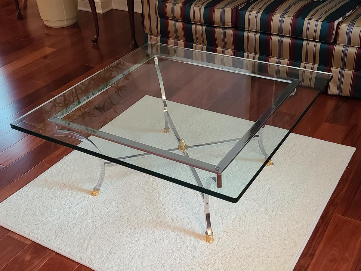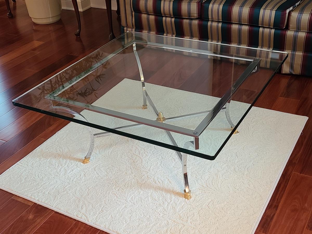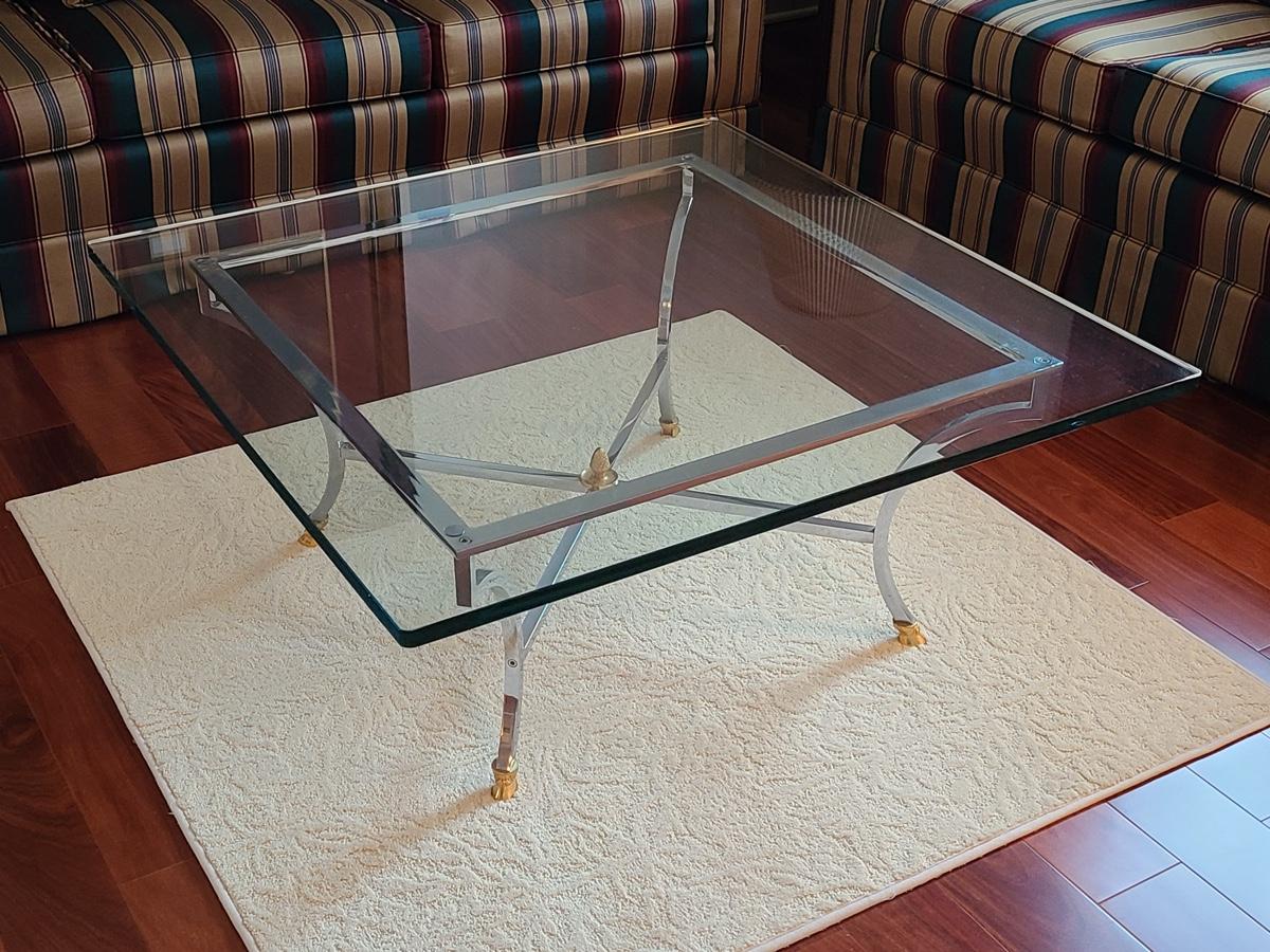 Lot 306: Hollywood Regency: Chrome with Gold Claw Feet, Glass Top Coffee Table
