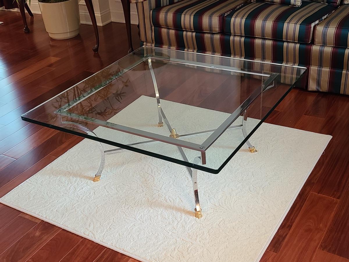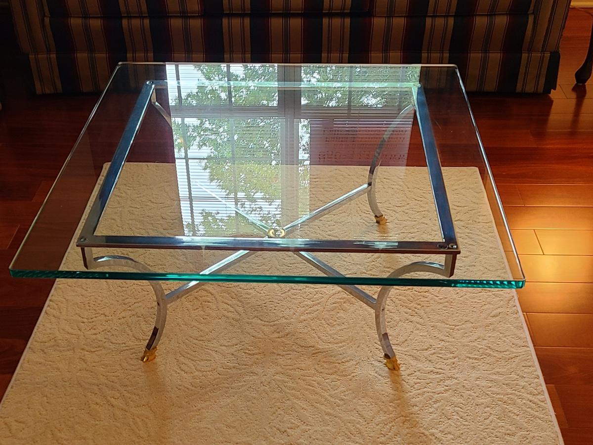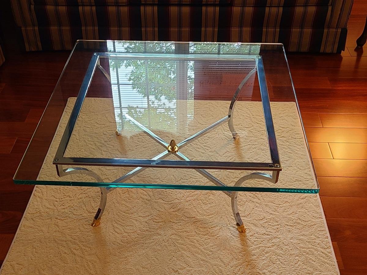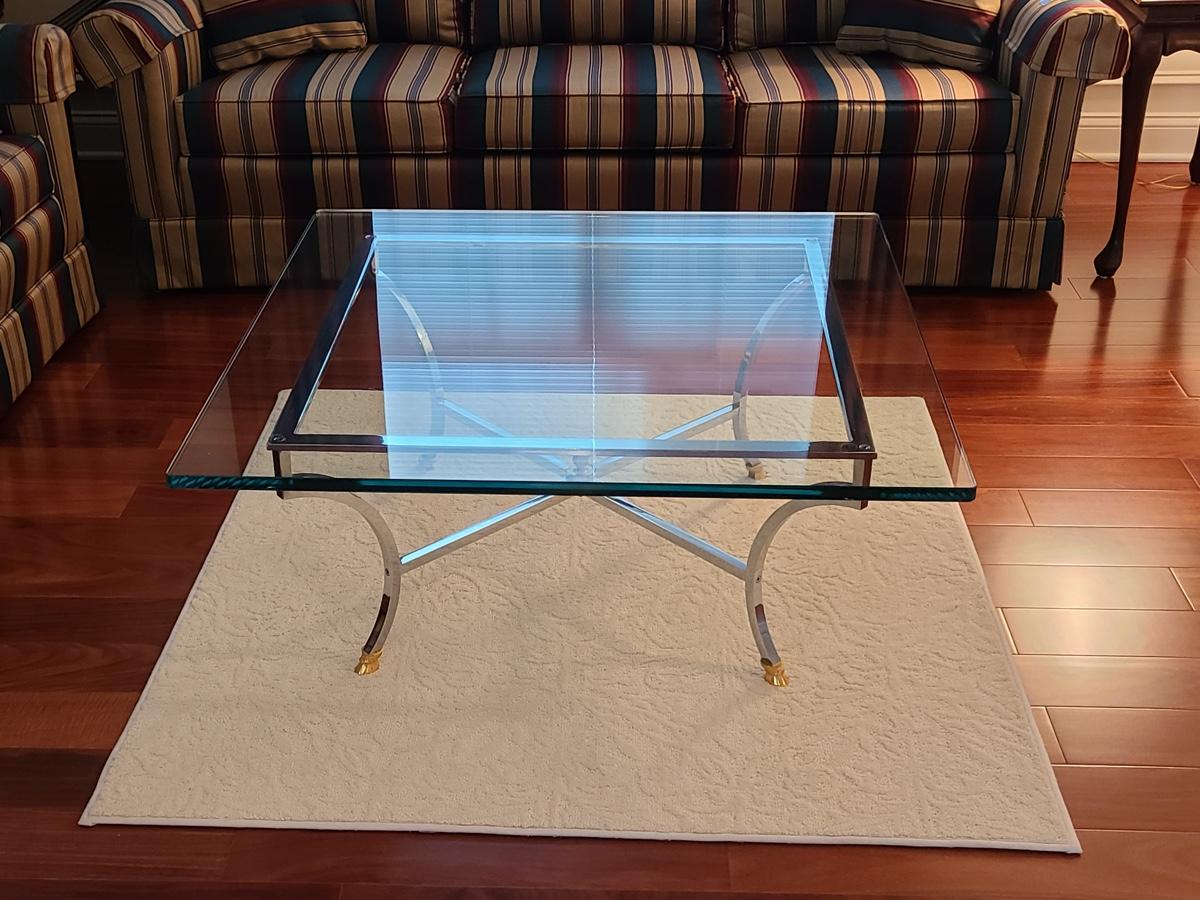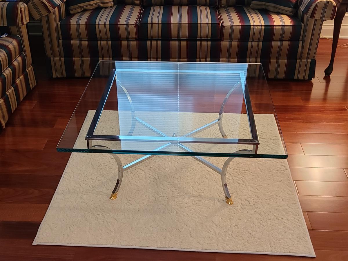 Lot 306: Hollywood Regency: Chrome with Gold Claw Feet, Glass Top Coffee Table