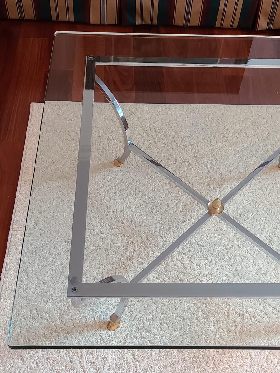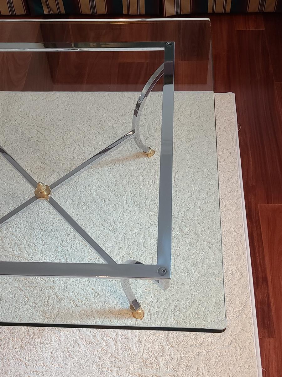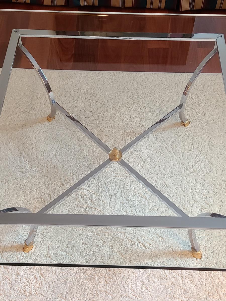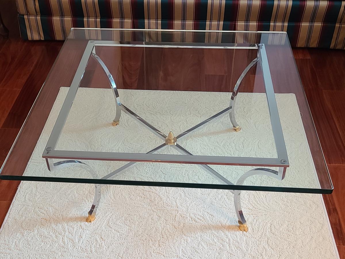 Lot 306: Hollywood Regency: Chrome with Gold Claw Feet, Glass Top Coffee Table