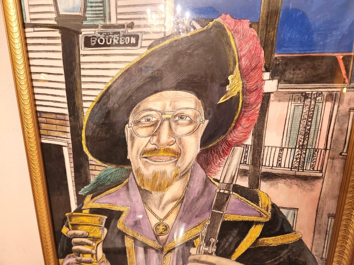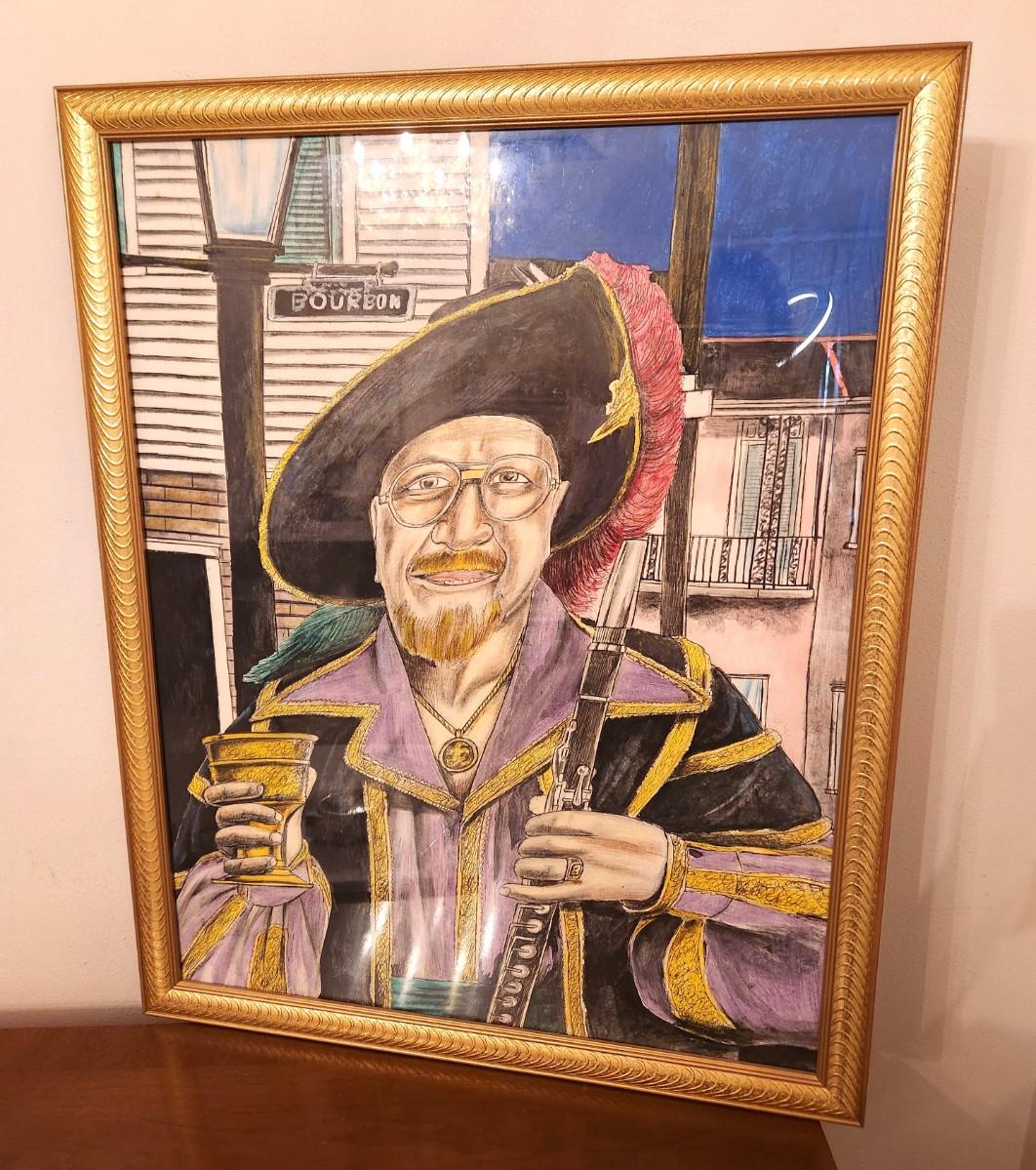 Original portrait, done by a member of his Half Fast Marching Group - looks like his Pirate LaPete costume - appears to be watercolor with added pen/ink embellishments. 31" tall - 24" across., unsigned.