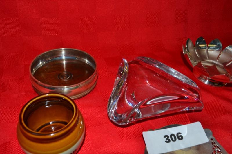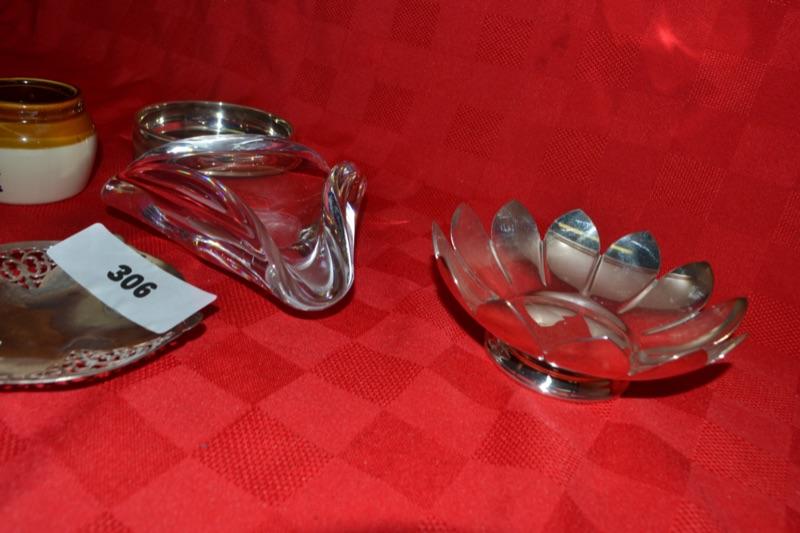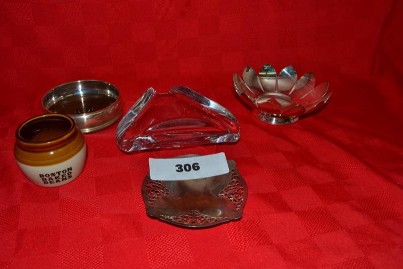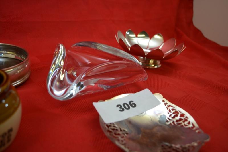 LOT 306 SILVER PLATE AND GLASS ITEMS