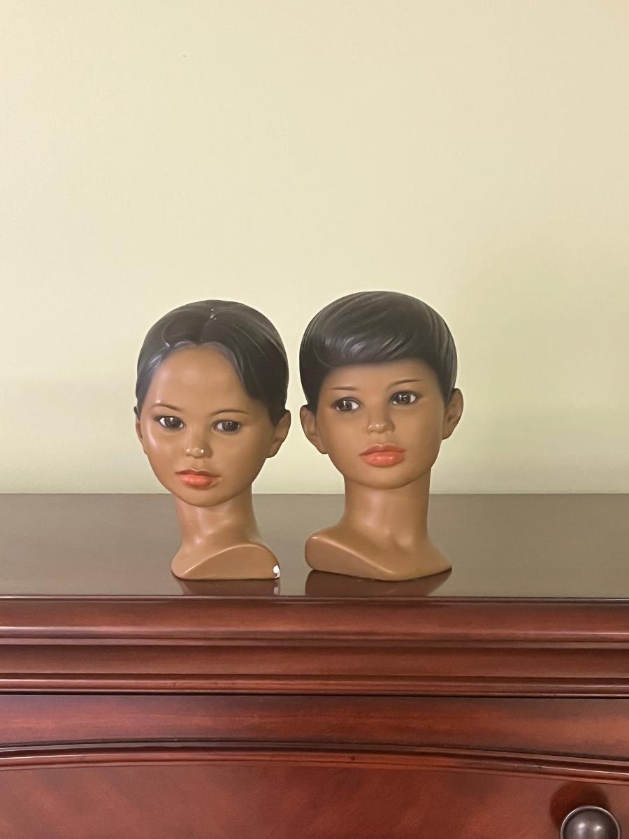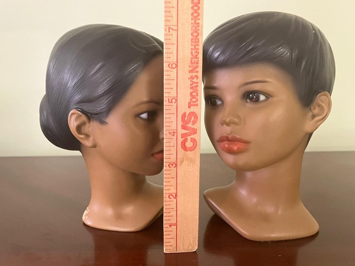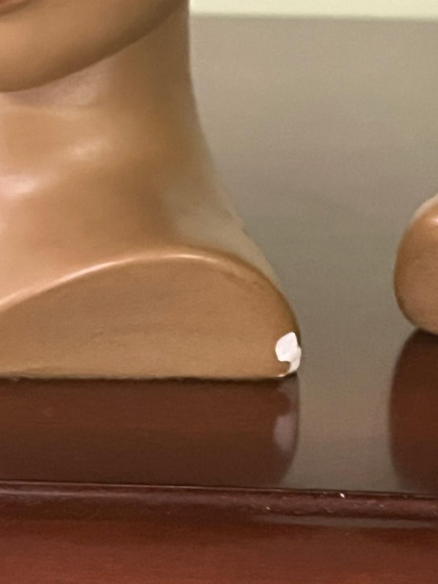 Boy and girl Marwal chalkware bust. There are some chips/scratches as seen in pictures.