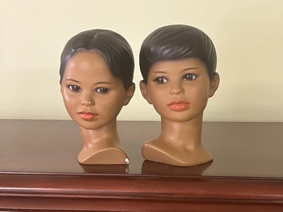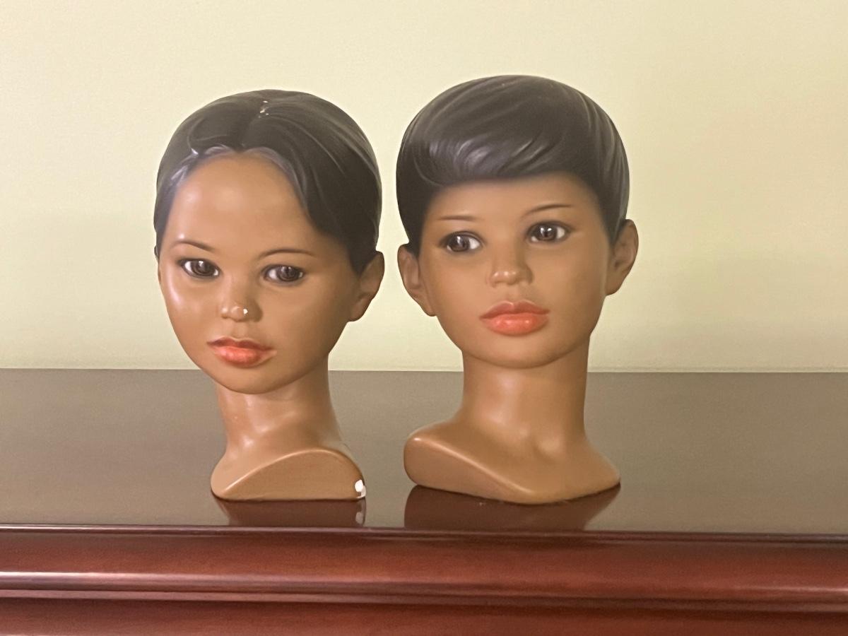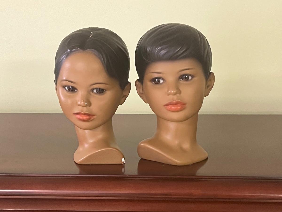 Boy and girl Marwal chalkware bust. There are some chips/scratches as seen in pictures.