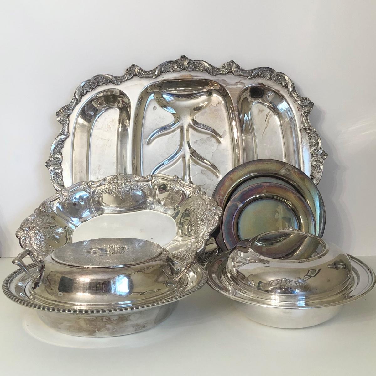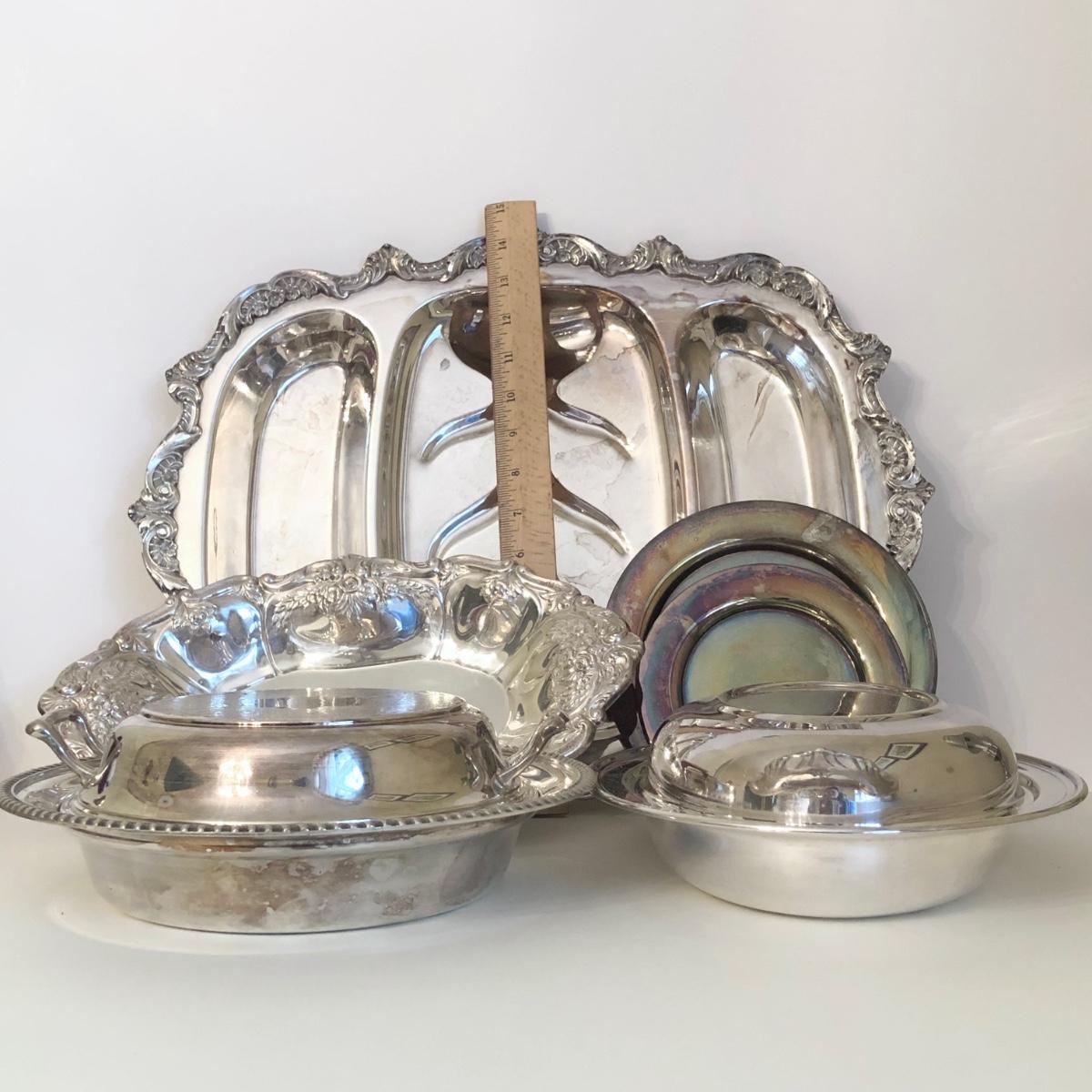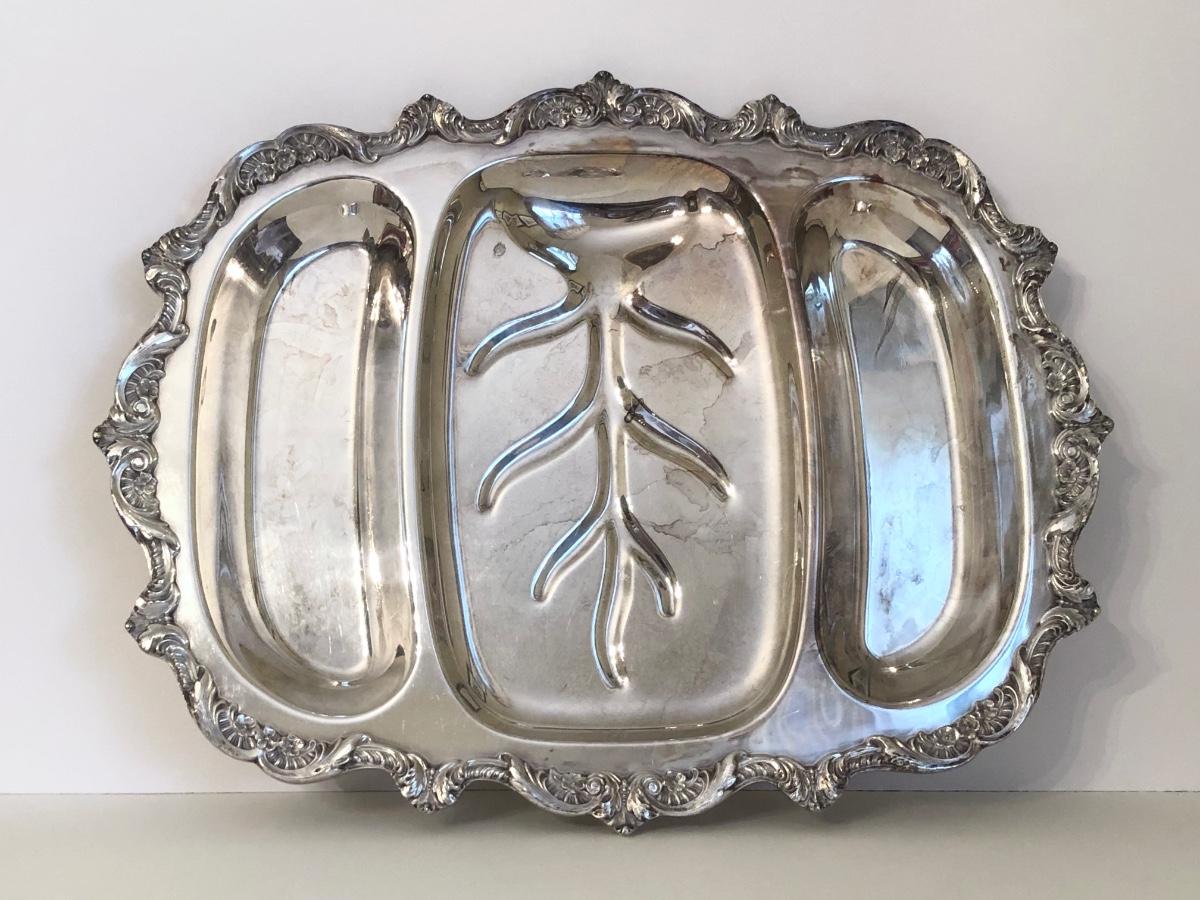 LOT 306G: Vintage Poole Silverplate Meat Tray 5009 & More Silver Plated Serving Dishes