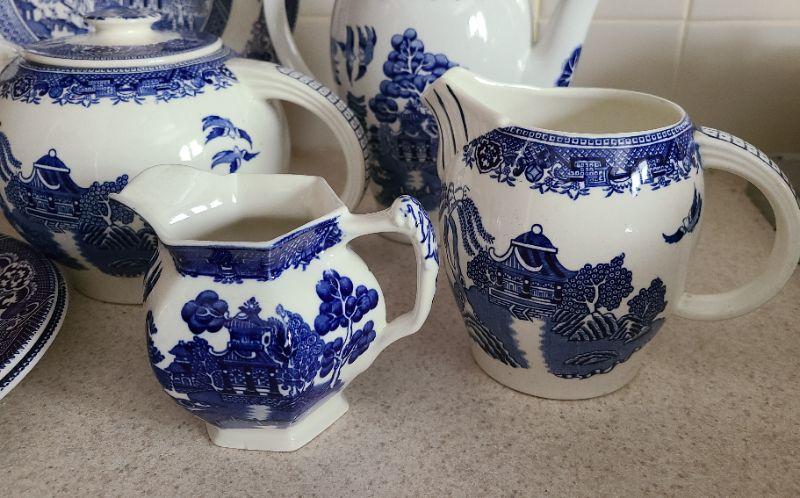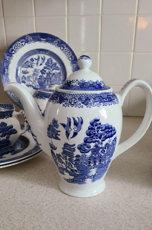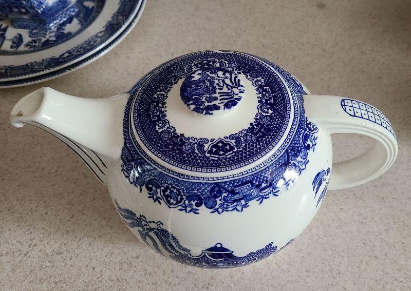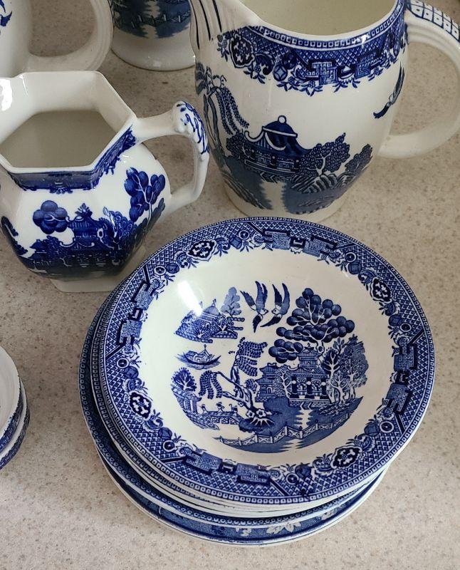 Beautiful lot of pieves marked Woods Ware Blue Willow. One teapot has surface chip out of lid (please see pics) Please see all pictures for content of the lot, condition of the lot, and measurements if taken. Pictures are the best representation of the items listed and items are untested unless indicated in description. Thank you for looking and have fun bidding!