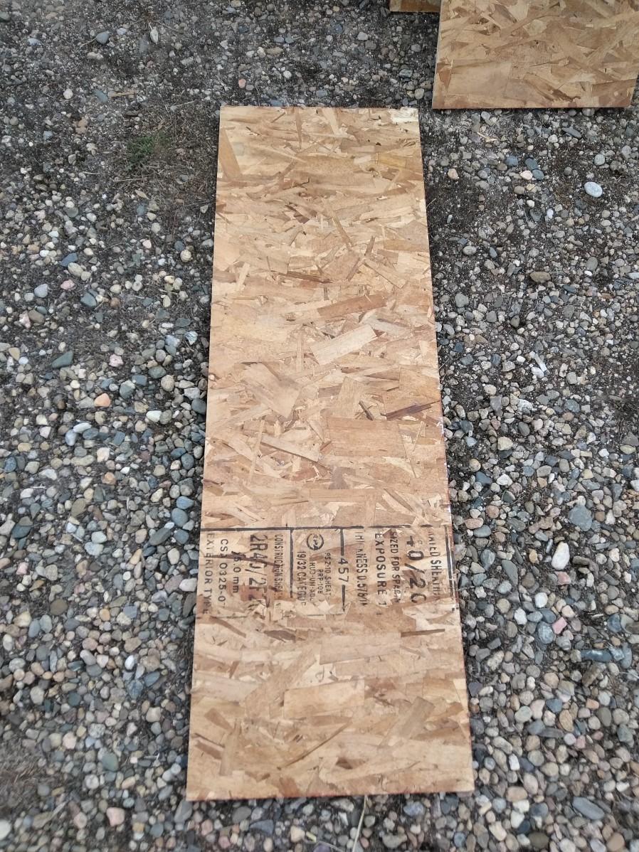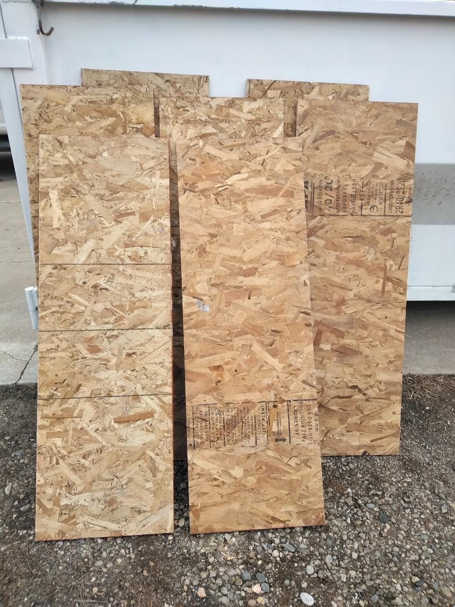 SEVEN PIECES OF OSB SHEATHING MOST LIKLY CUT FOR SHELVING 1'4" X 4'