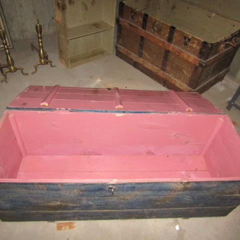 WOODEN TRUNK 48" X 16" X 23" GOOD SHAPE
