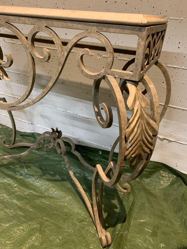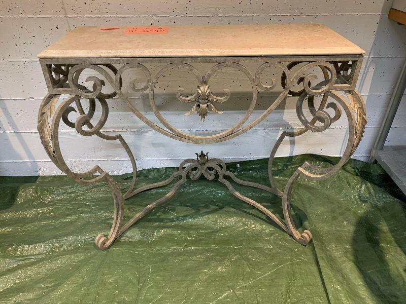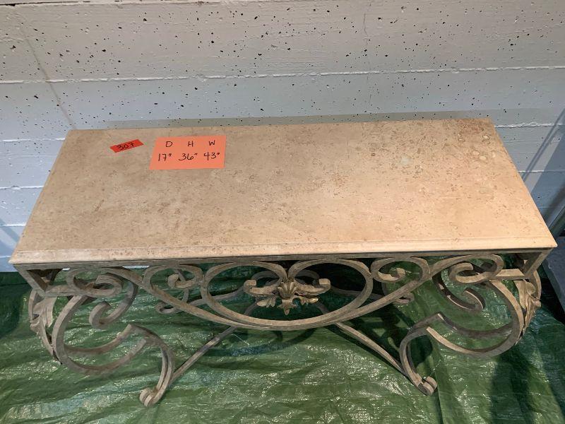 Heavy ornate metal table with stone/granate top (matches Lot 306)