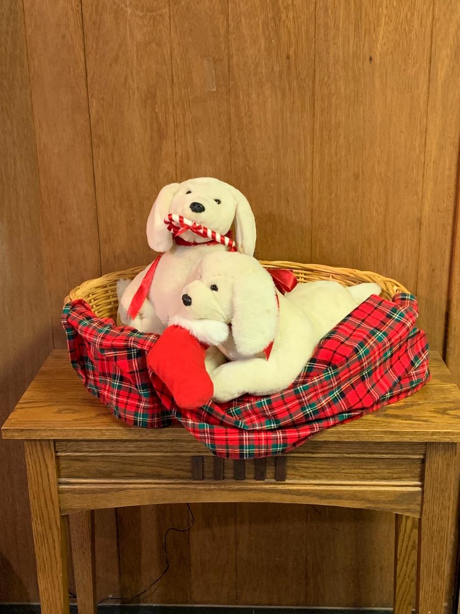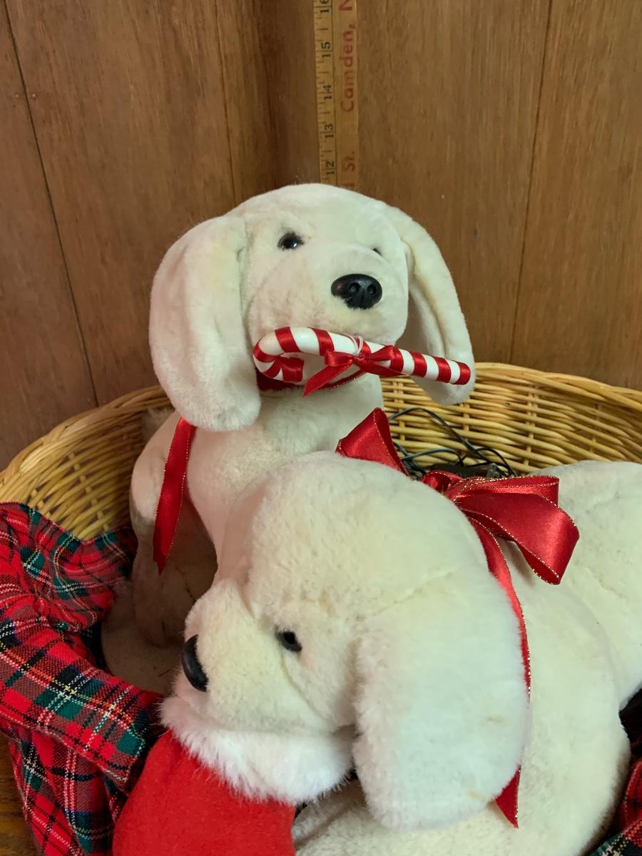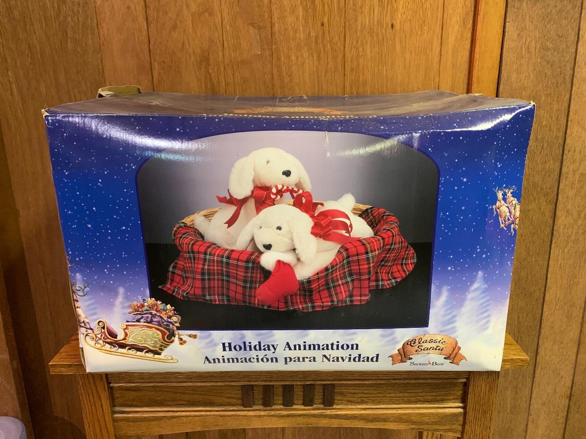 Lot 307: Large Santa's Best Animated Puppies in a Basket w/Box