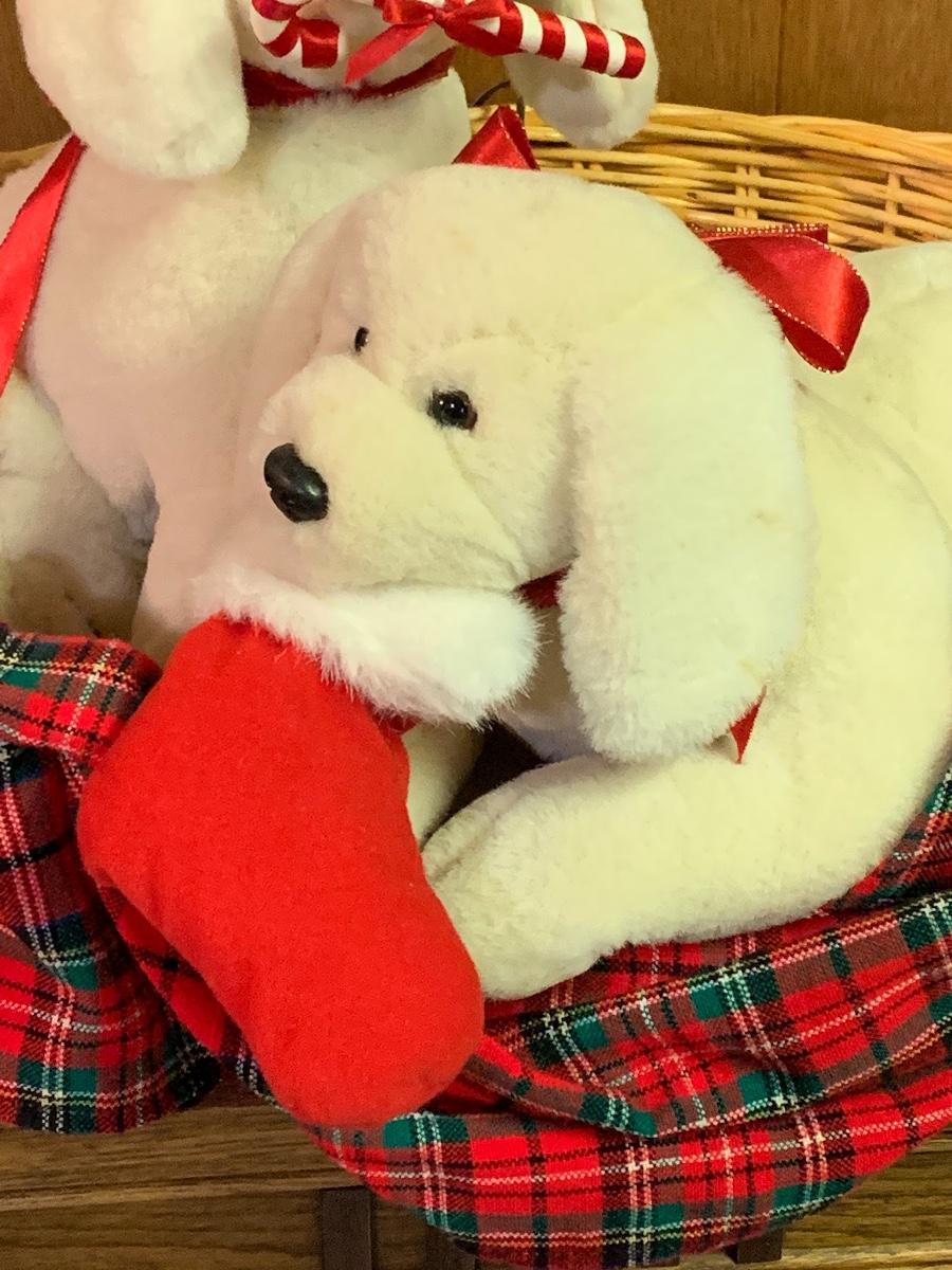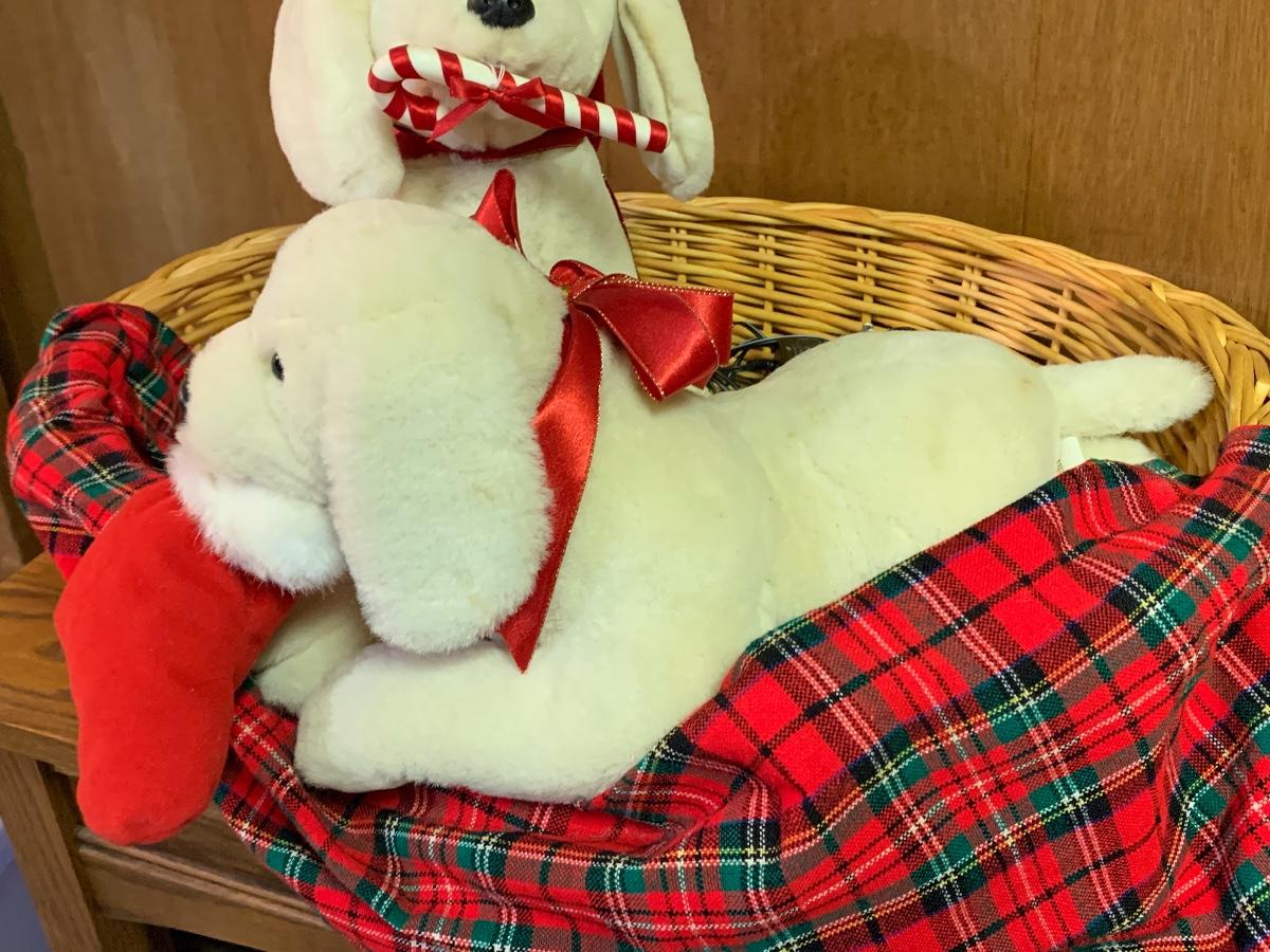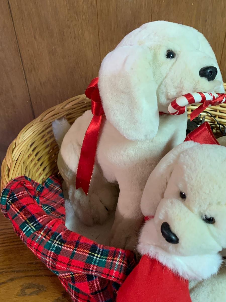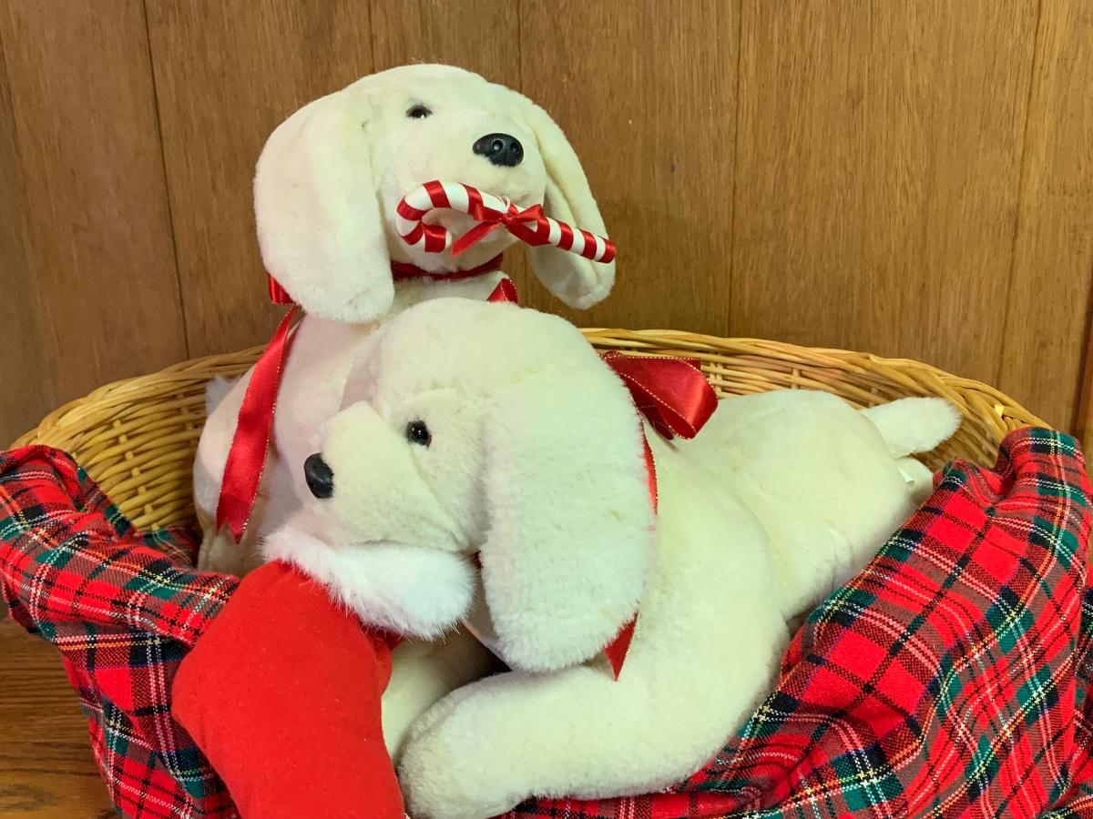 Lot 307: Large Santa's Best Animated Puppies in a Basket w/Box