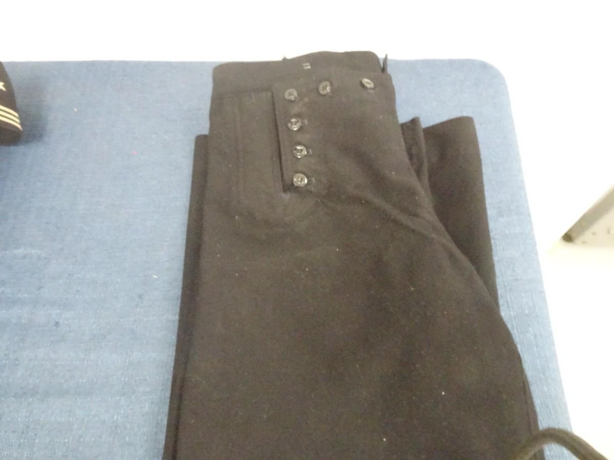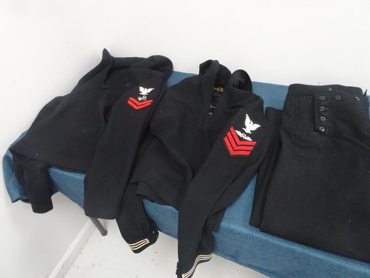 LOT 307. VINTAGE NAVY UNIFORMS TWO SHIRTS ON PAIR OF 13 BUTTON PANTS