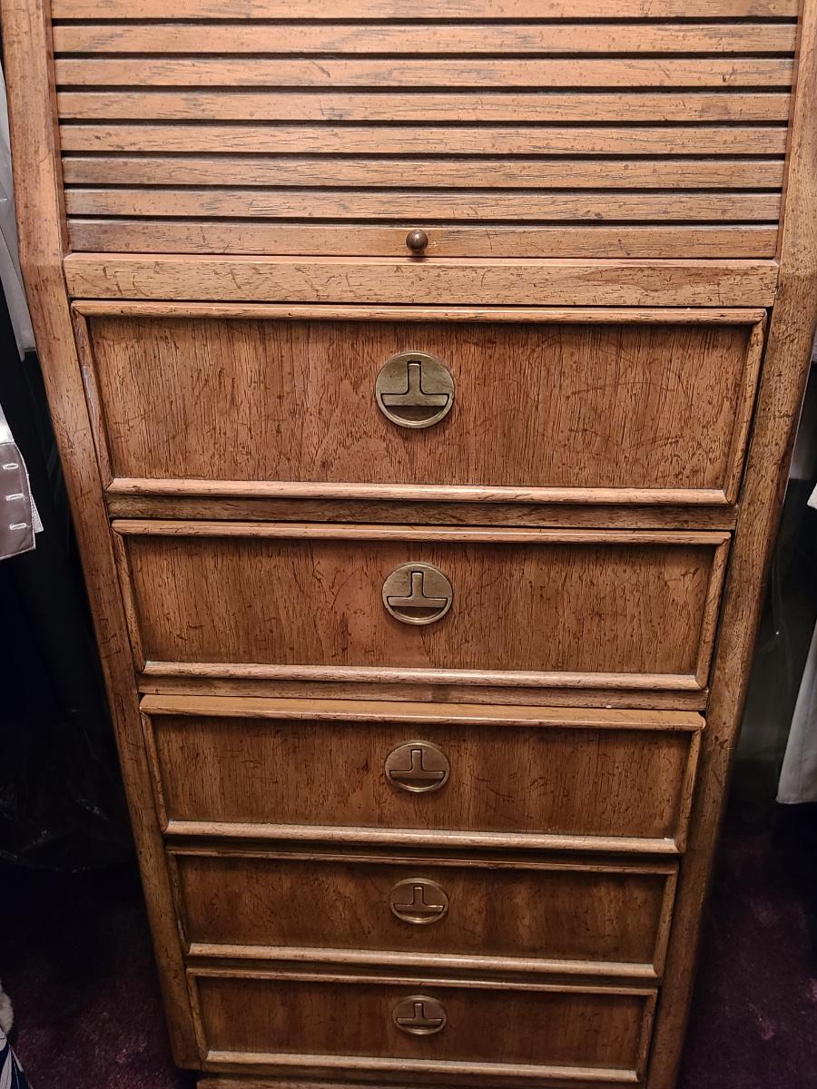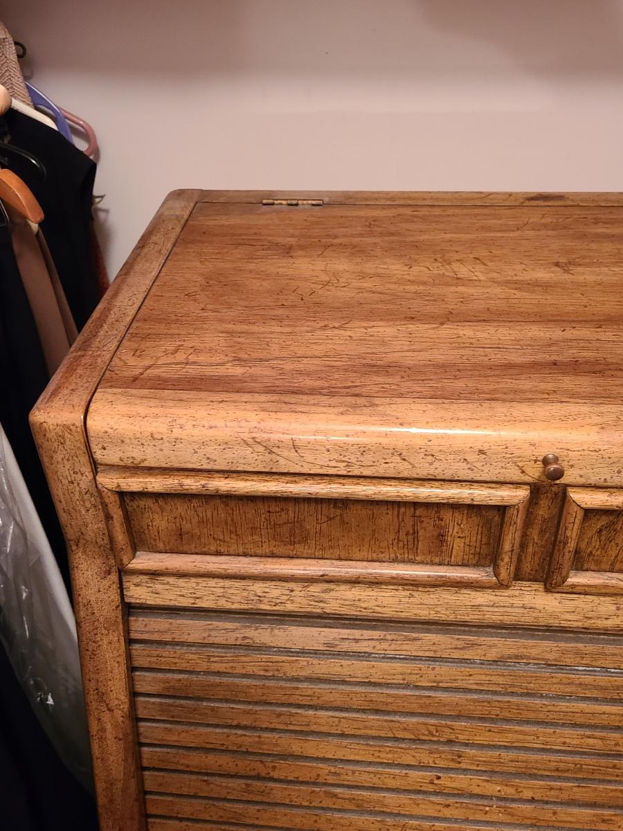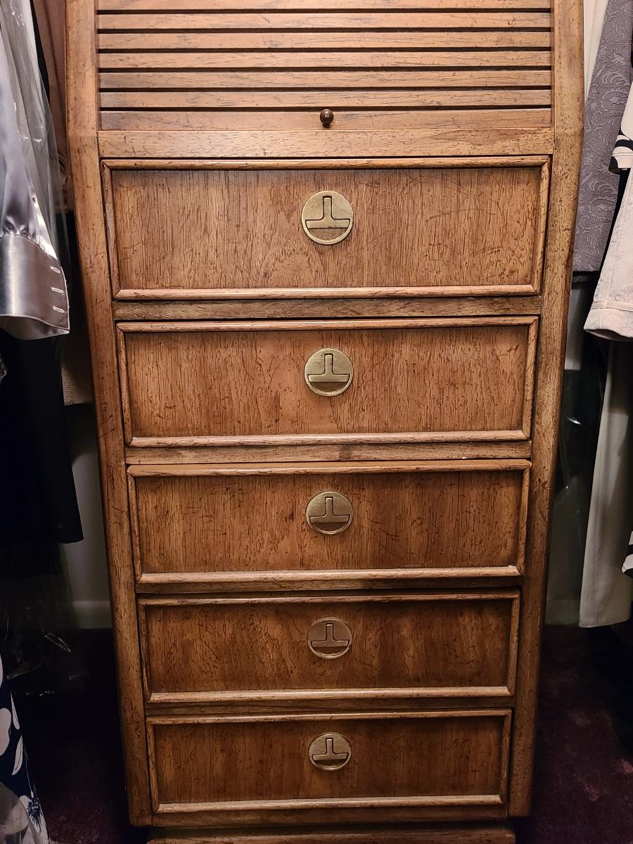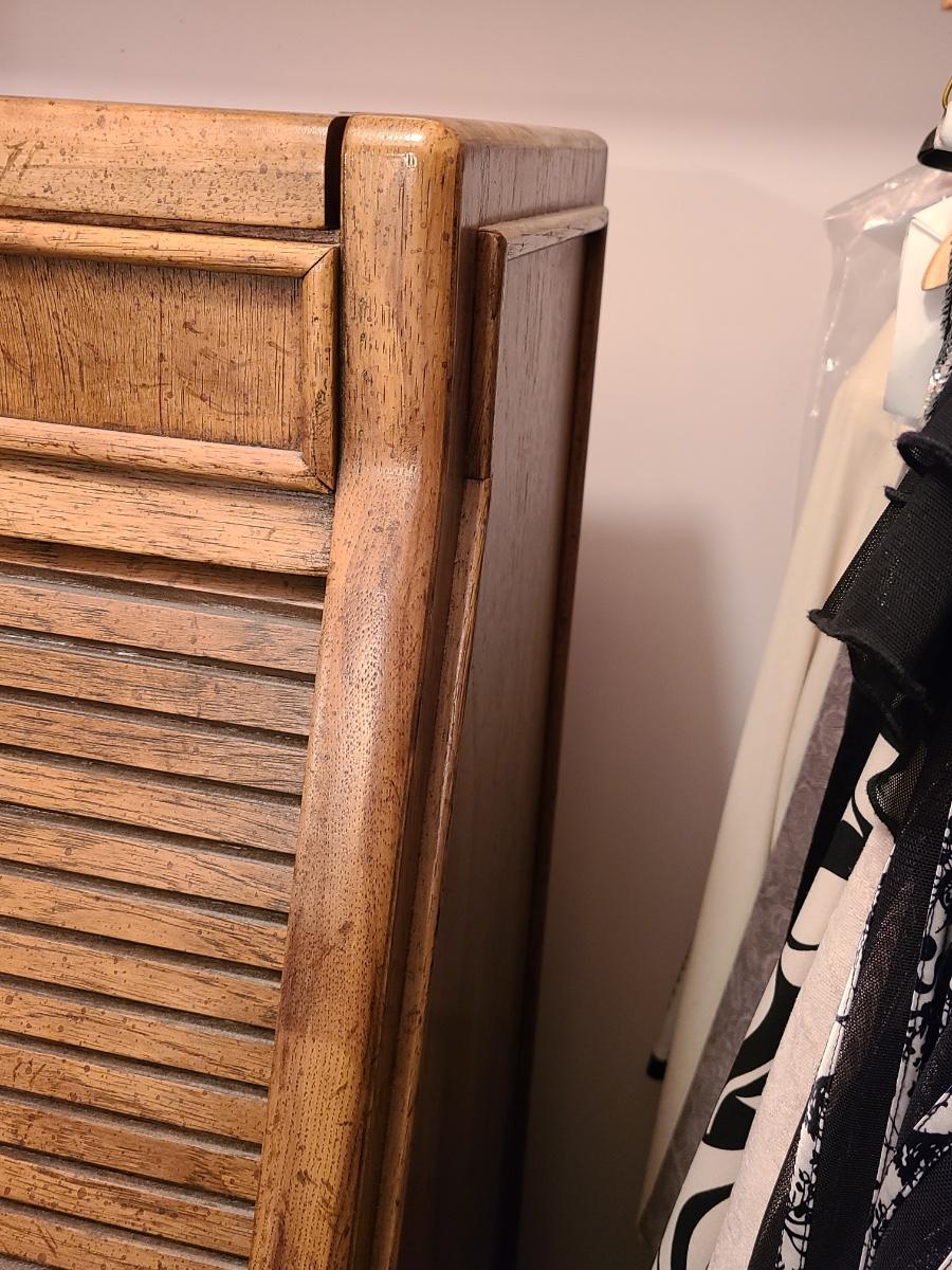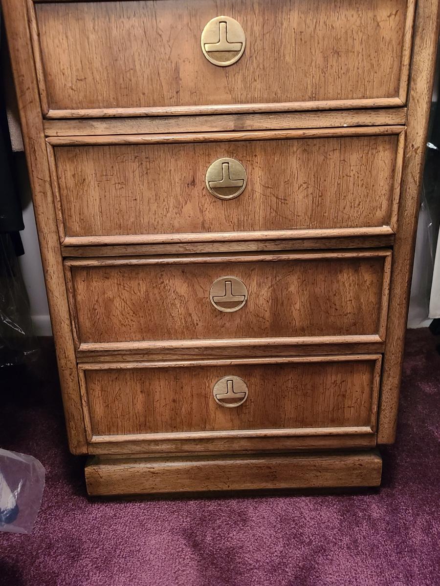 Items inside not included! This has a contemporary design to it, but also could be used in a home with Asian flair. This has brass hardware. There are petite drawers down the front for lingerie or jewelry, with a secretary style slide up front where larger accessories can be stored, and the top can be put up to display mirror and jewelry holder. Keep the lid down with a lamp on top, and you can secretly store items inside. Perfect for any room in the house. Would also be perfect as an entryway accent for gloves, scarves, and hats! This is located upstairs and you will need to bring help to move. Please see all pictures as they are the best representation of the items. The pictures show condition, measurements if taken, and what is included in the lot. Due to the large amount that we photograph and the time frame, we are not always able to take measurements. All items unless noted, are pre-owned and have been used. If you purchased furniture, you must bring help. We do not allow one person to carry large furniture out on their own. Bring help, tools and a truck for the safety of our client’s homes, and your personal safety. Company policy. Thank you.