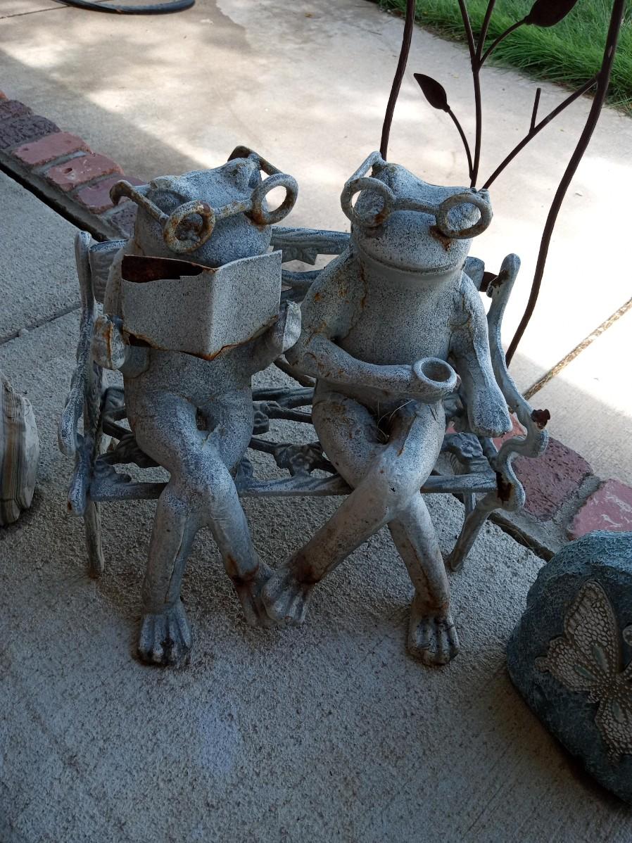 THE SIDE OF THE FROG BENCH IS BROKEN BUT THIS IS SOOO CUTE IT IS WORTH WELDING IT BACK TOGETHER