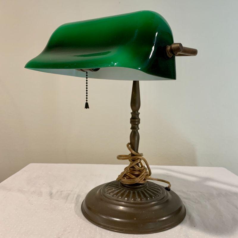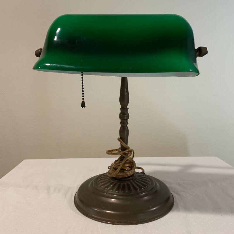 Reproduction desk lamp Green glass shade.