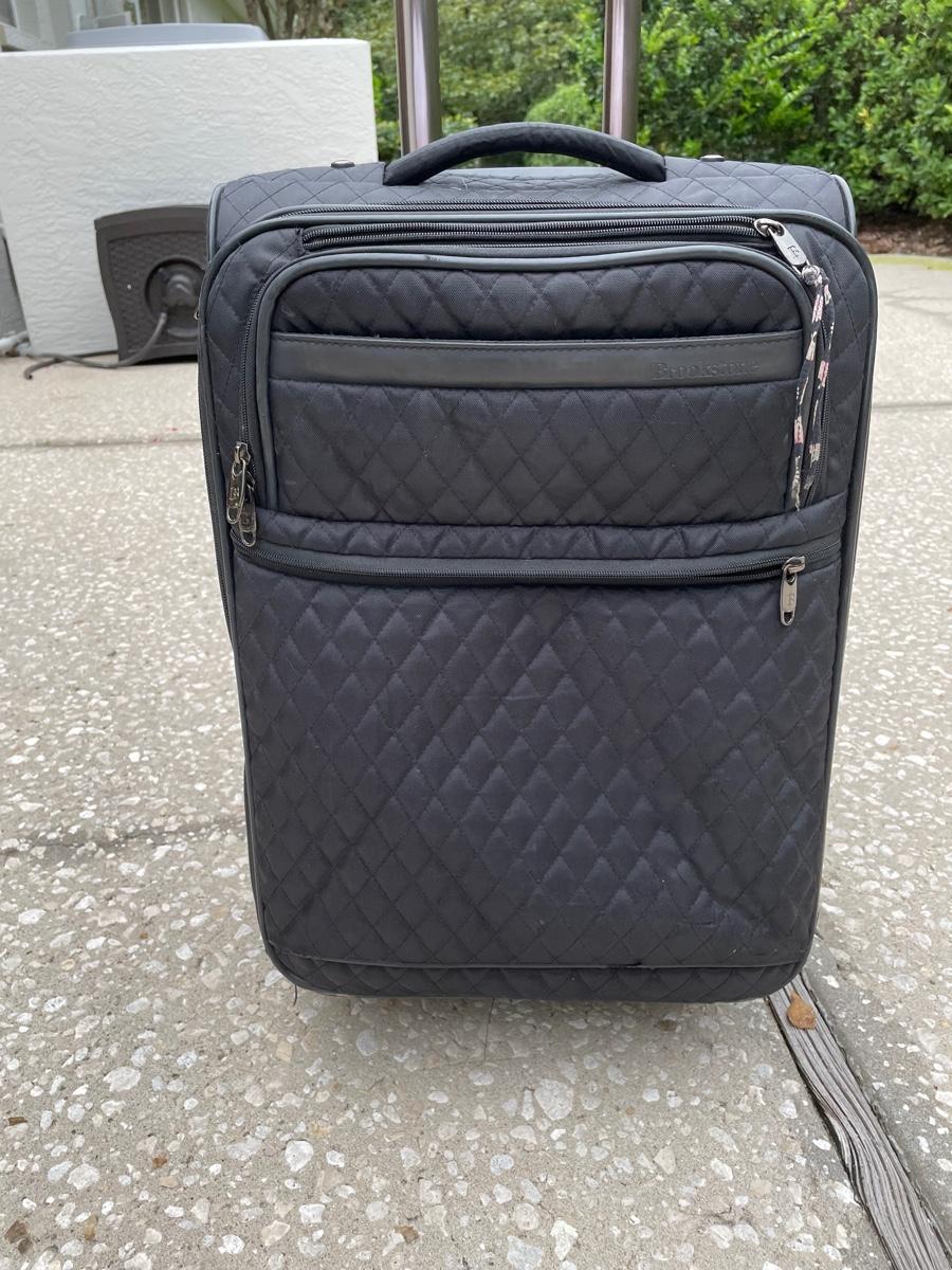 Black, Lots of pockets for easy travel access. Spinner wheels.