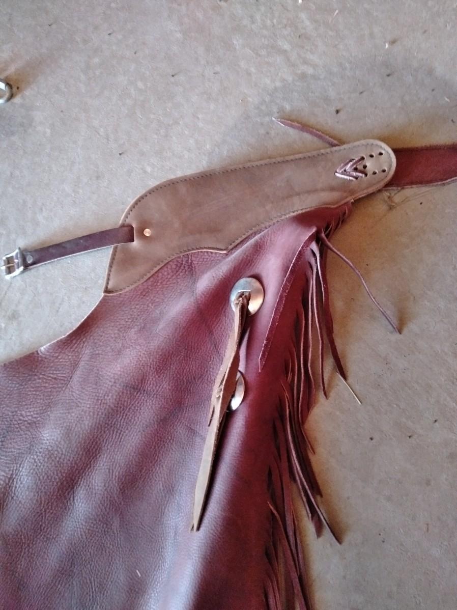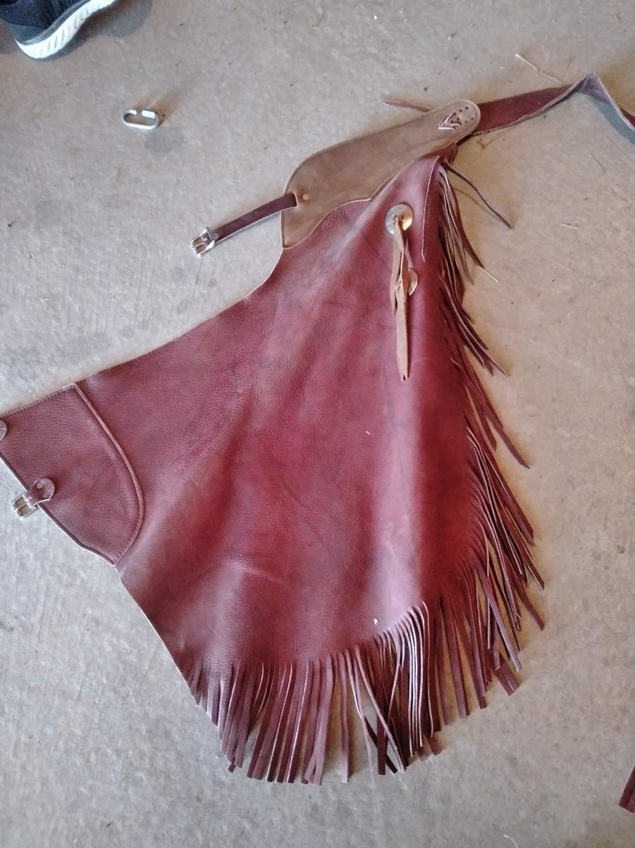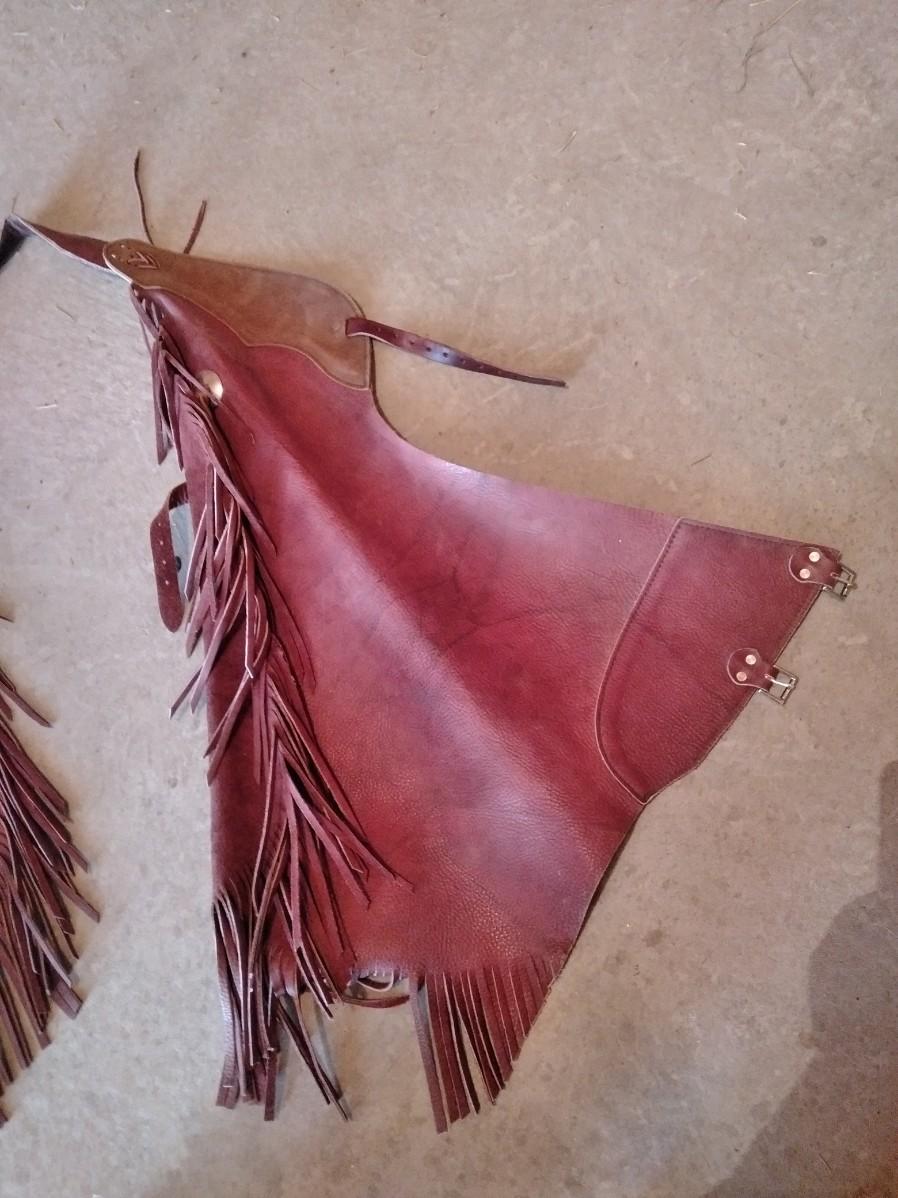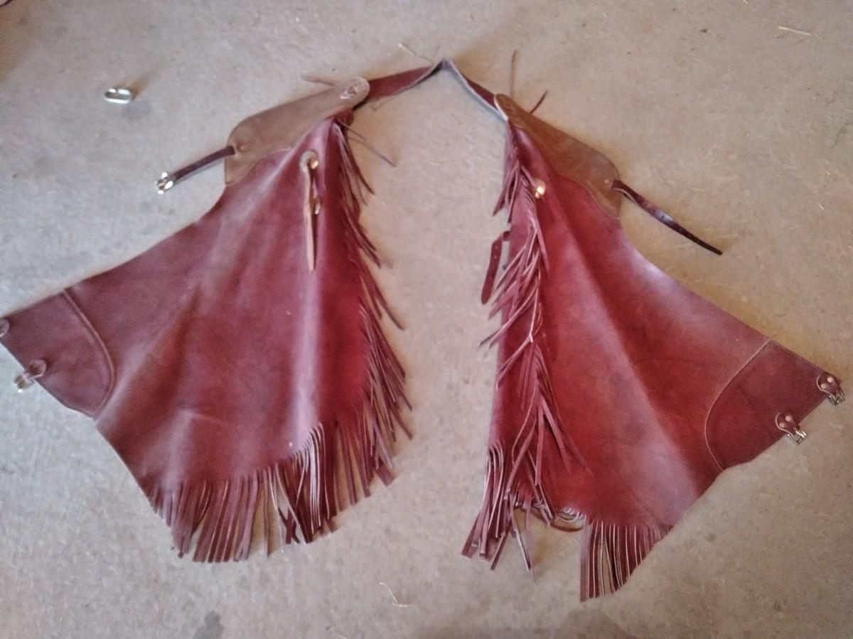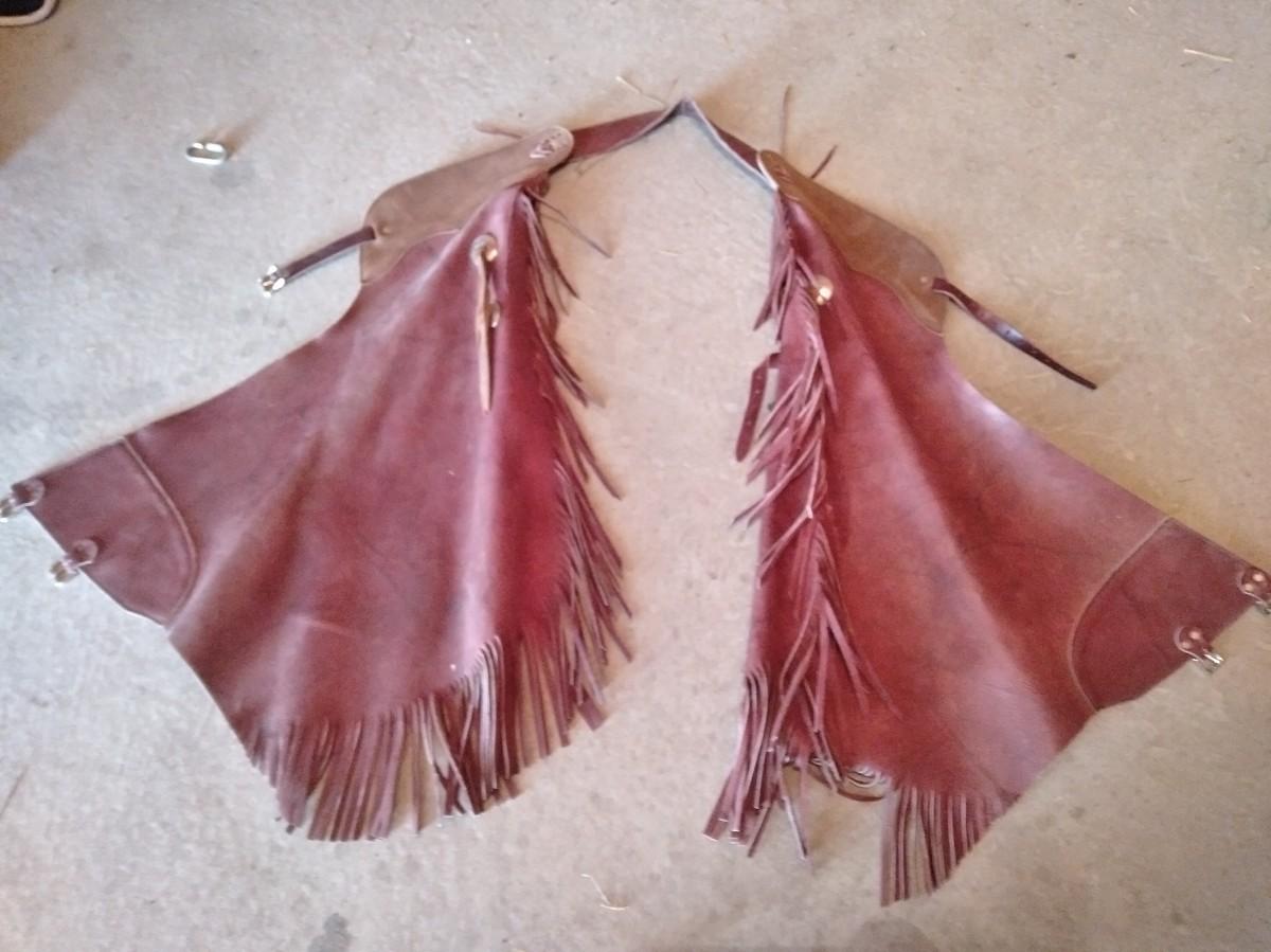 LEATHER CHAPS WITH CONCHOS AND FRINGE
