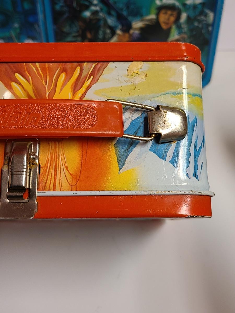 Vintage lot of lunch boxes. These are pre-owned and they all have some minor condition issues, due to age. Only three thermos included. Please see all pictures as they are the best representation of the items. The pictures show condition, measurements if taken, and what is included in the lot. Due to the large amount that we photograph and the time frame, we are not always able to take measurements. All items unless noted, are pre-owned and have been used. If you purchased furniture, you must bring help. We do not allow one person to carry large furniture out on their own. Bring help, tools and a truck for the safety of our client’s homes, and your personal safety. Company policy. Thank you.