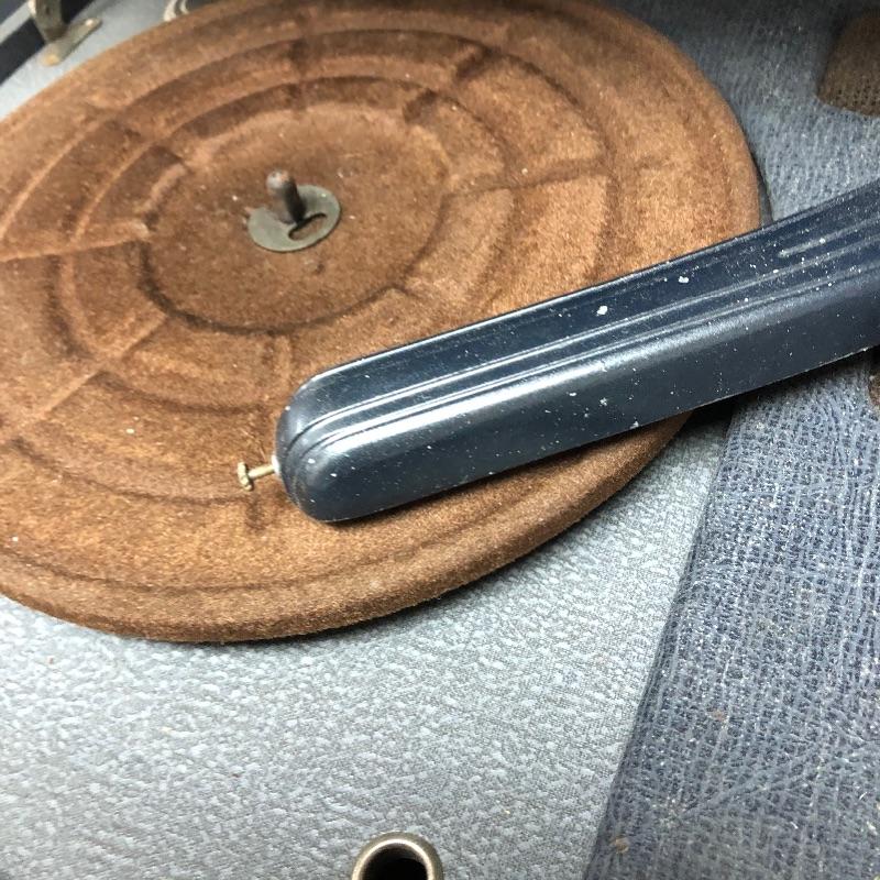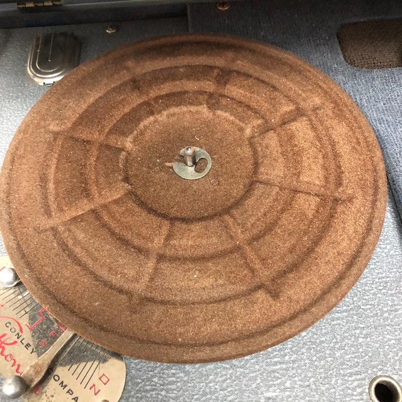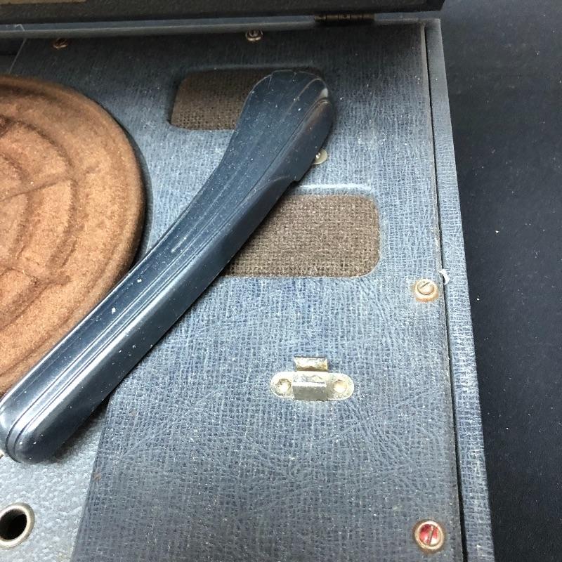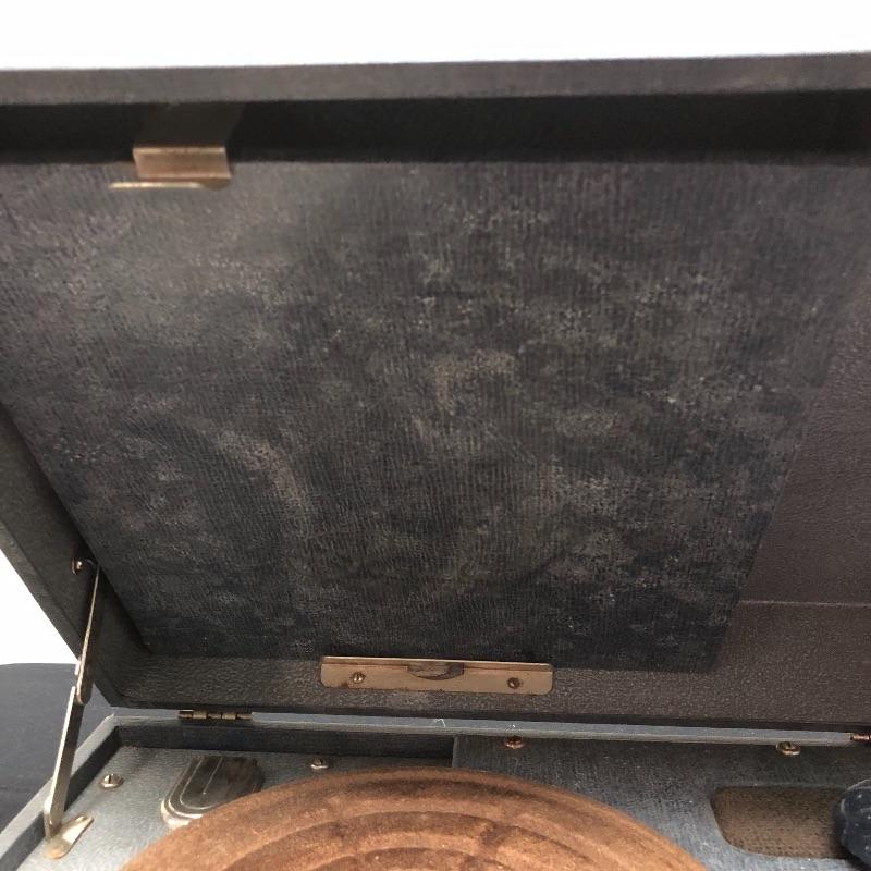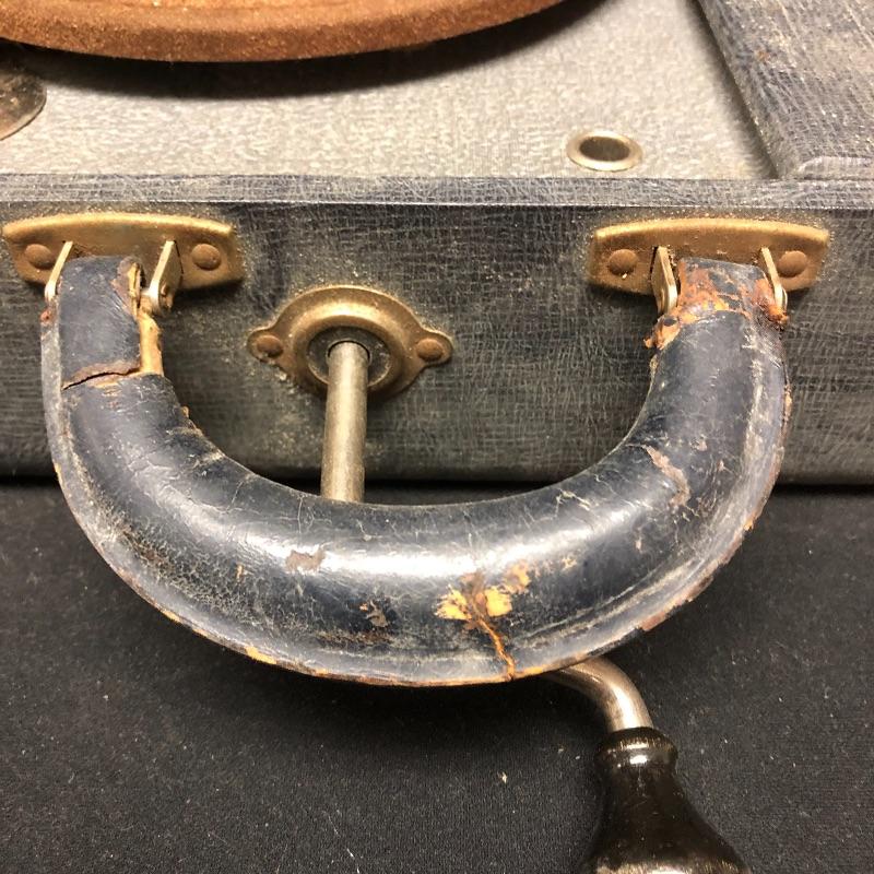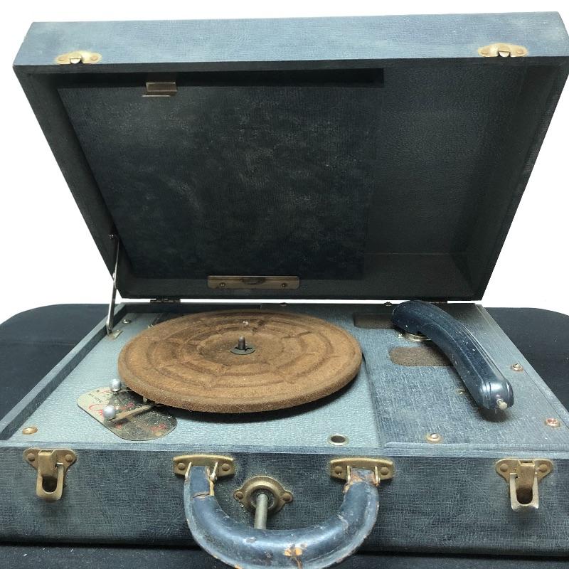 This lot includes one Waters Conley Company Phonola from the 1920’s, Rochester, MN. There are two records included in the case. It appears there are two speakers in the case by the arm. The turntable spins when cranked.