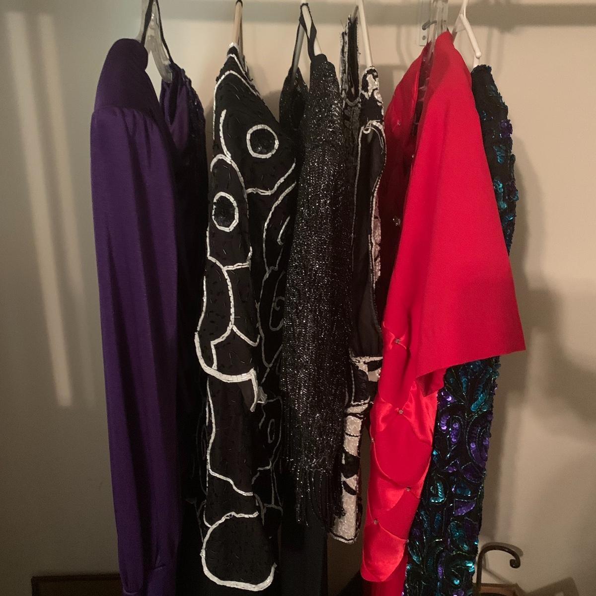 Lady’s“🦆 Check this out! This lot includes an assorted group of beautiful formal wear. Included are four dresses, a sequin top, and a vest adorned with shiny decorations. This lot features brand such as Paradise, Laurence Kagar, and Chair Ade. All items are sizes L, & XL. Local pickup only.