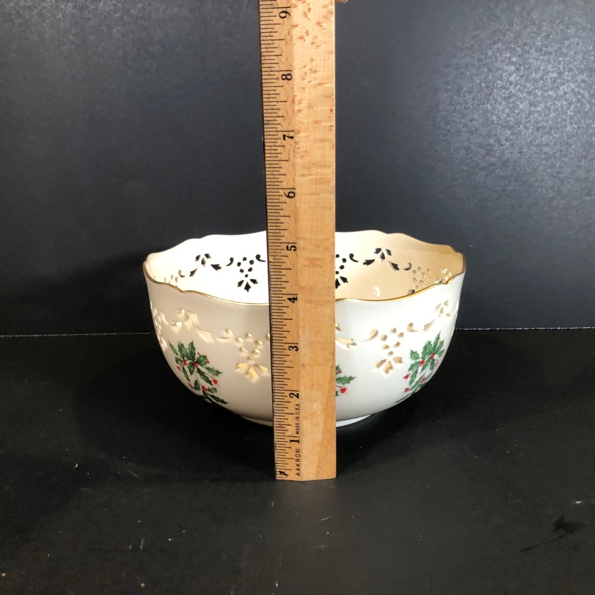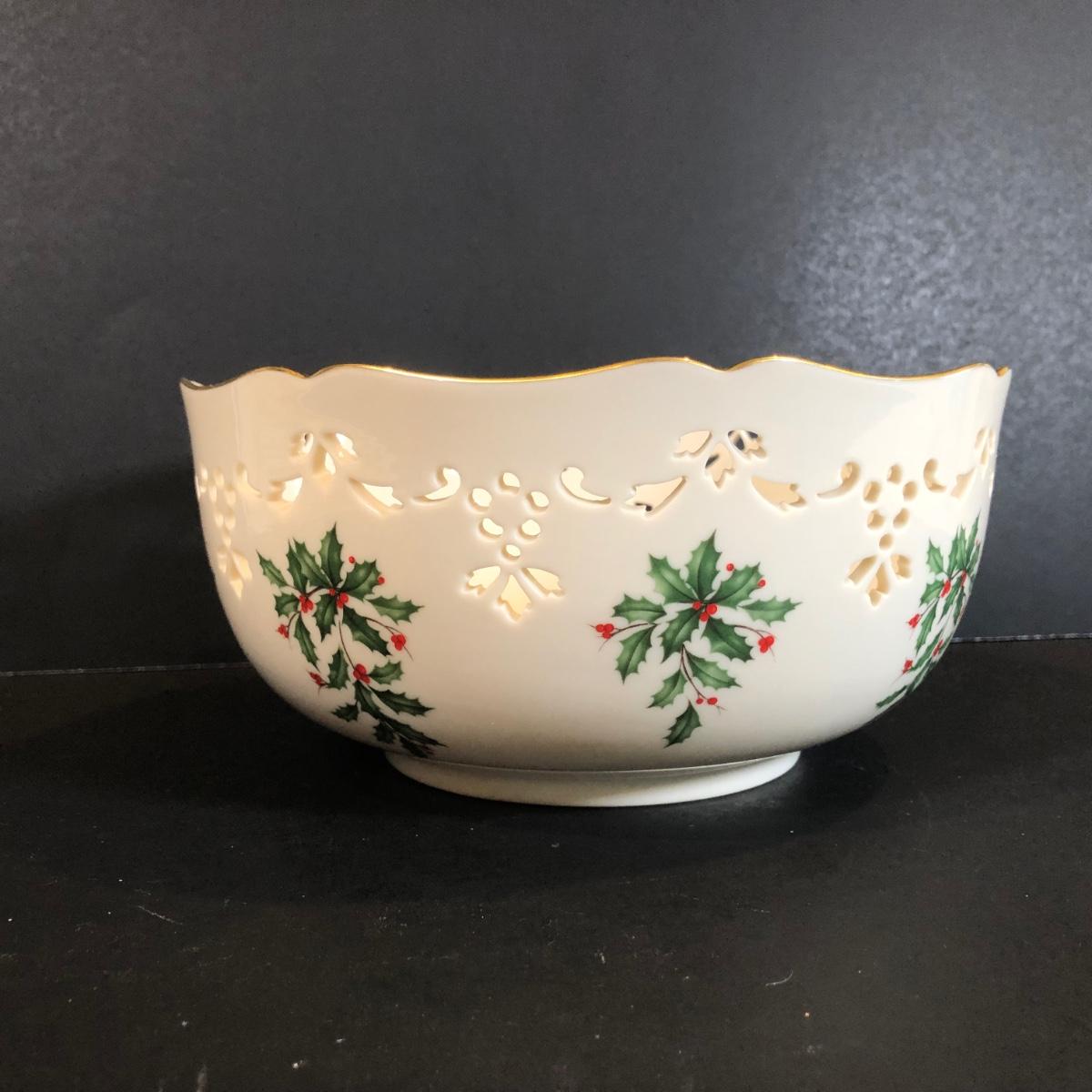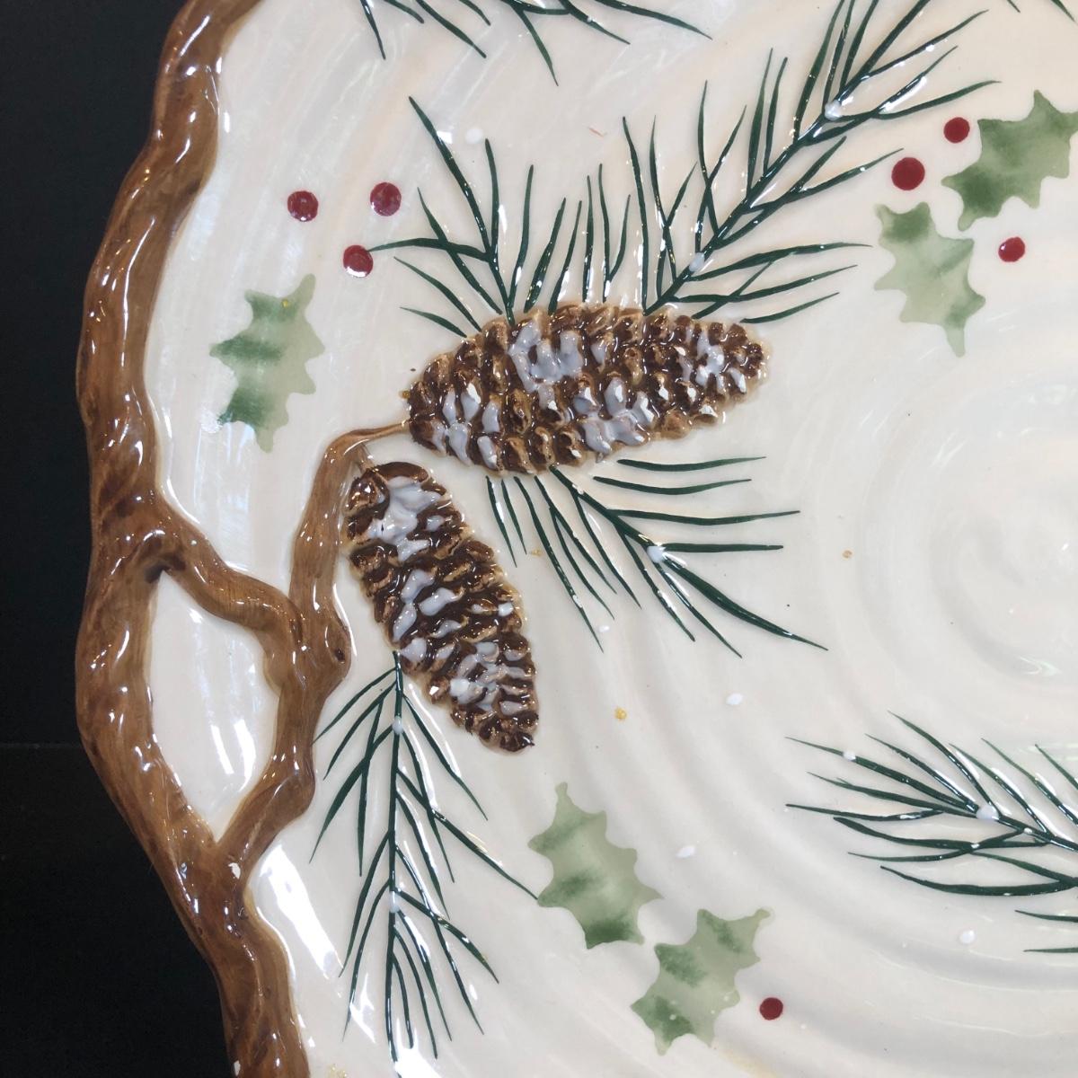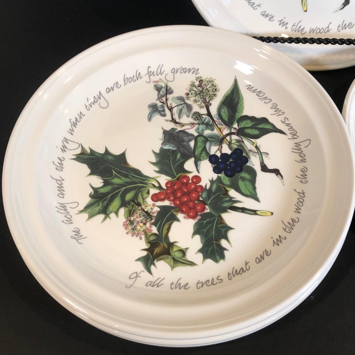 LOT 307K: Winter Collection - Portmerion "The Holly & The Ivy" Plates by Anwyl Cooper-Willis, Lenox Holiday 8" Cutout Bowl, Mikasa Mugs, K&K Interiors Pinecone Plate & More