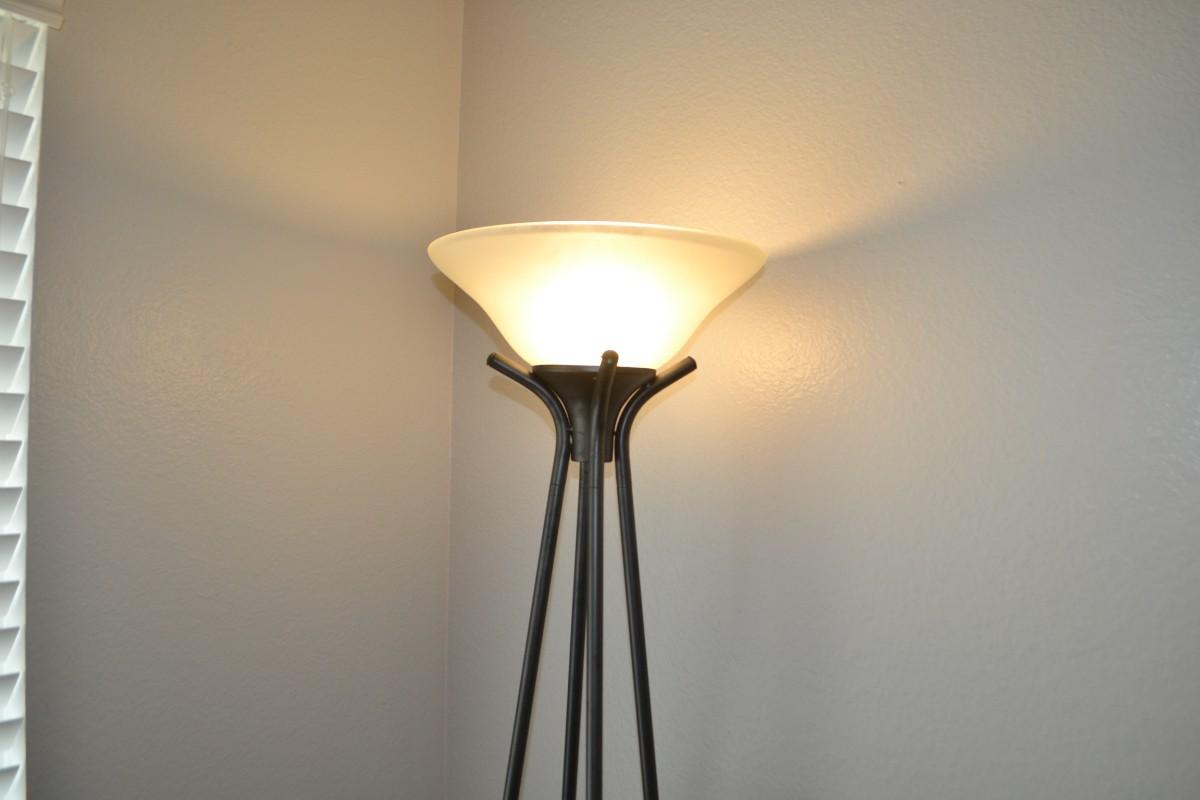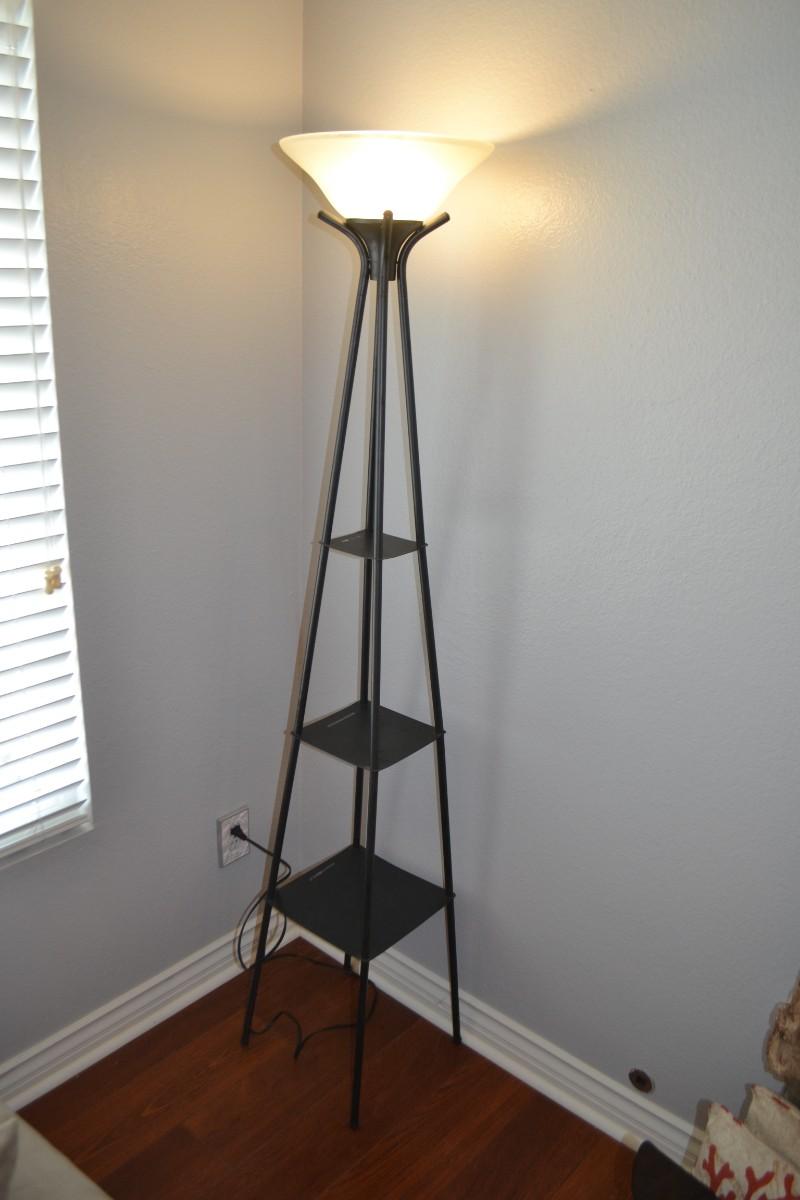 LOT 308 FLOOR LAMP WITH SMALL SHELVES