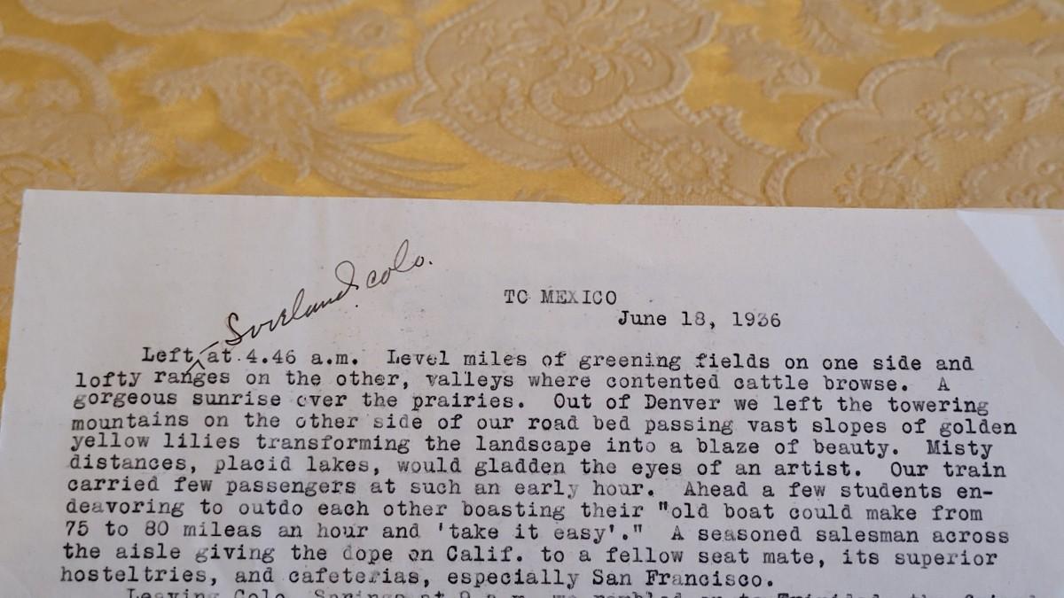 Lot 308: Antique 1936 Colorado to Mexico Travel Letter Ephemera