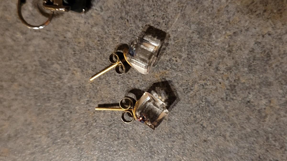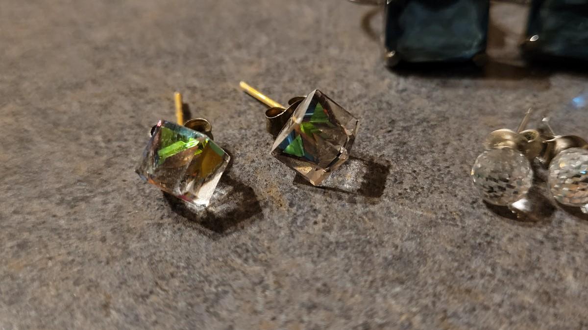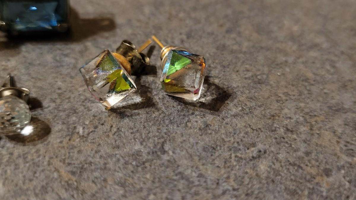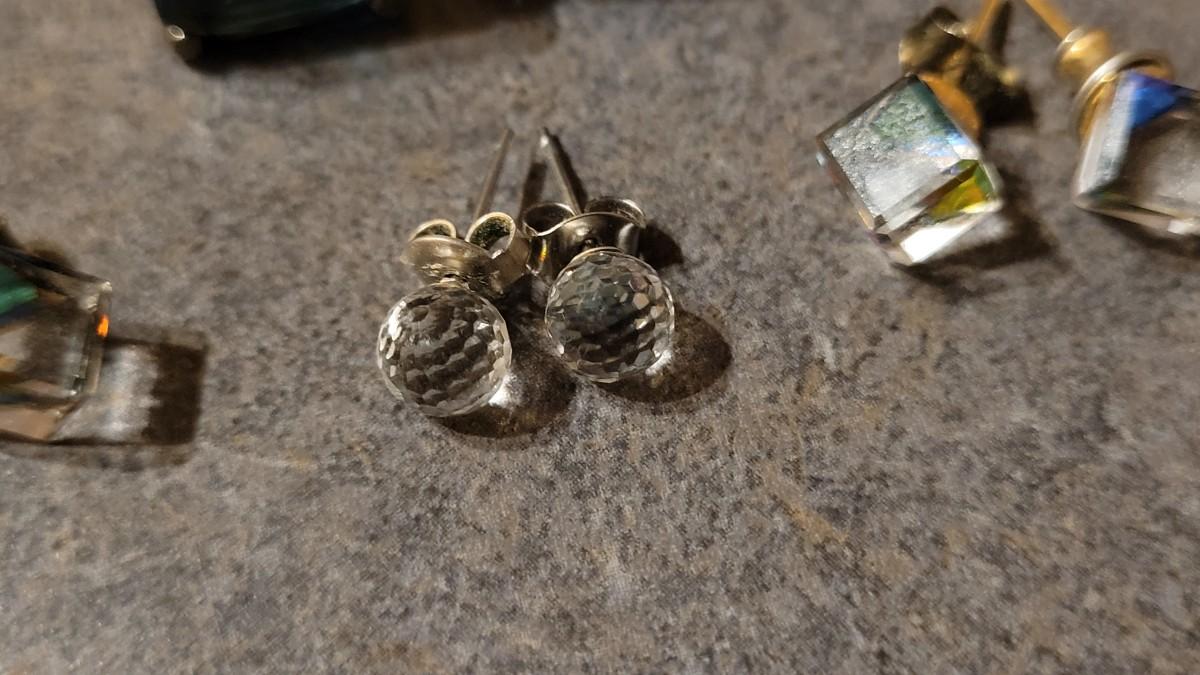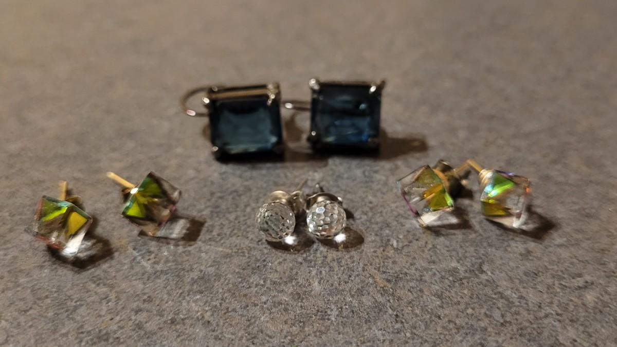 3 pairs of Crystal earrings and on dark blue glass earrings