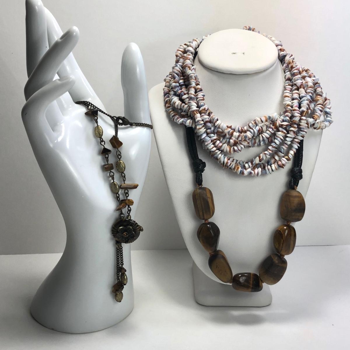 LOT 308: Two Stone Neckaces w/ Sterling Clasps & More