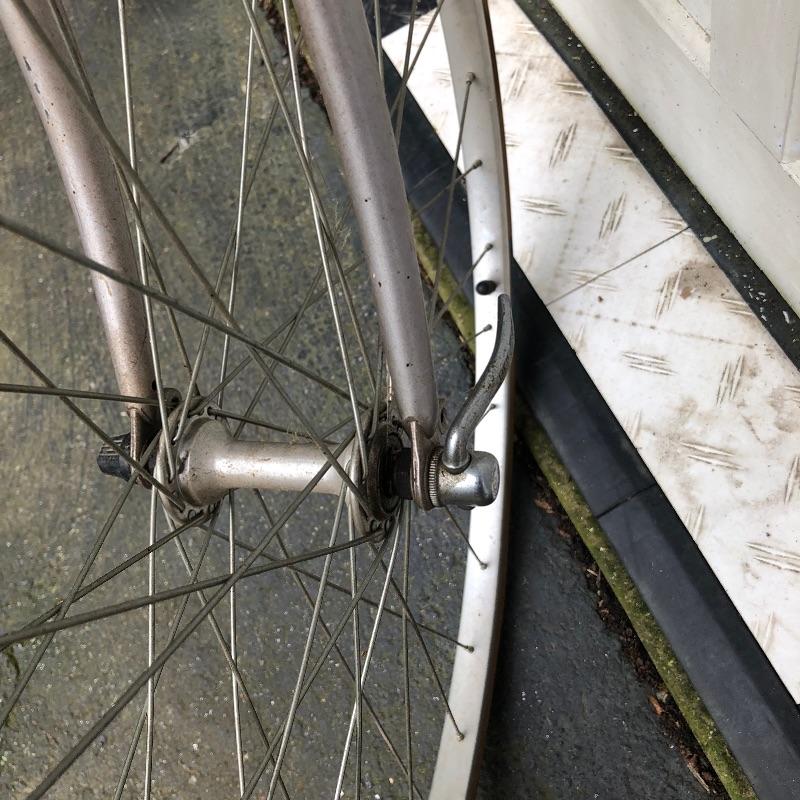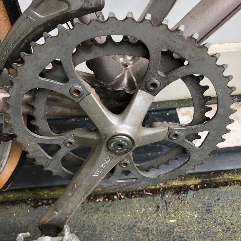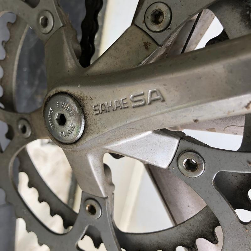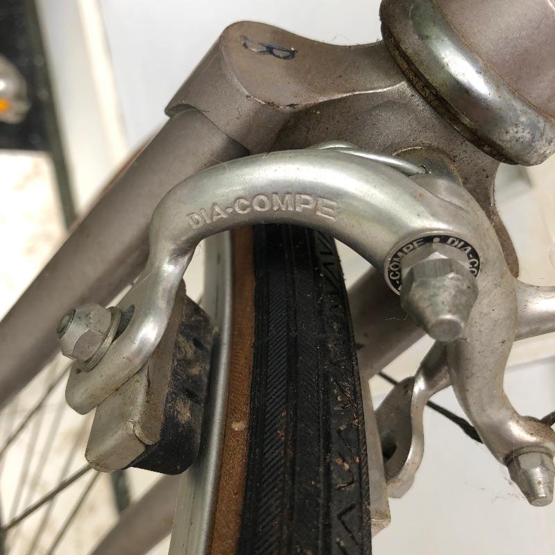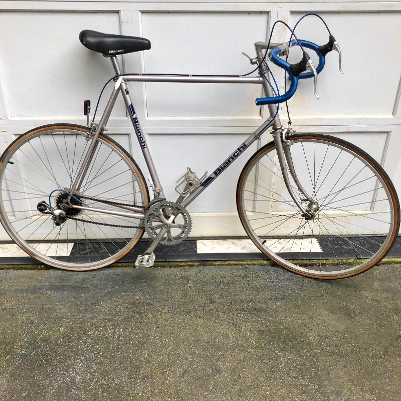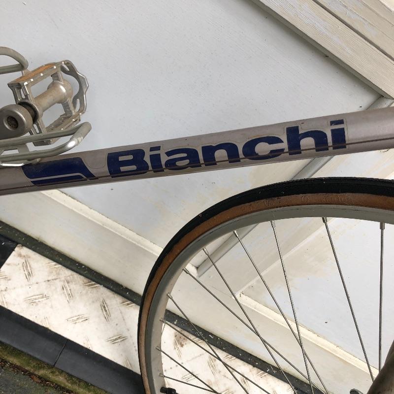 This Classic twelve speed Bianchi bike includes Dia-Compe side pull brakes, Shimano Derailleur, Sakae crank and quick release wheels. Bike measures 25” from center of crank to top of tube. Enjoy the fall weather and go for a ride with classic road bike.