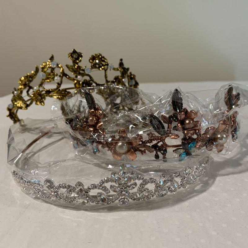 Great for Halloween or role playing! Metal crowns, 1 rhinestone 3 gold tone.