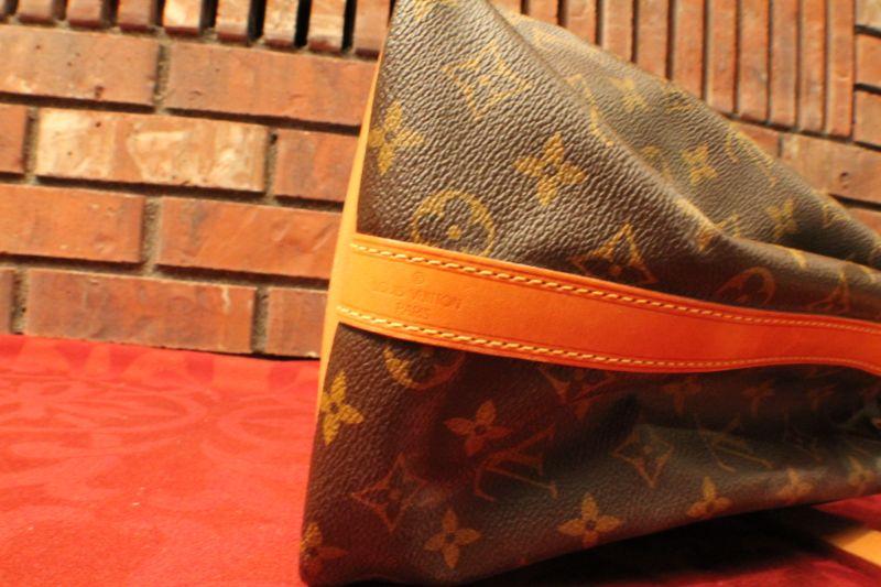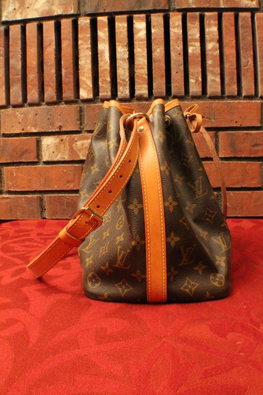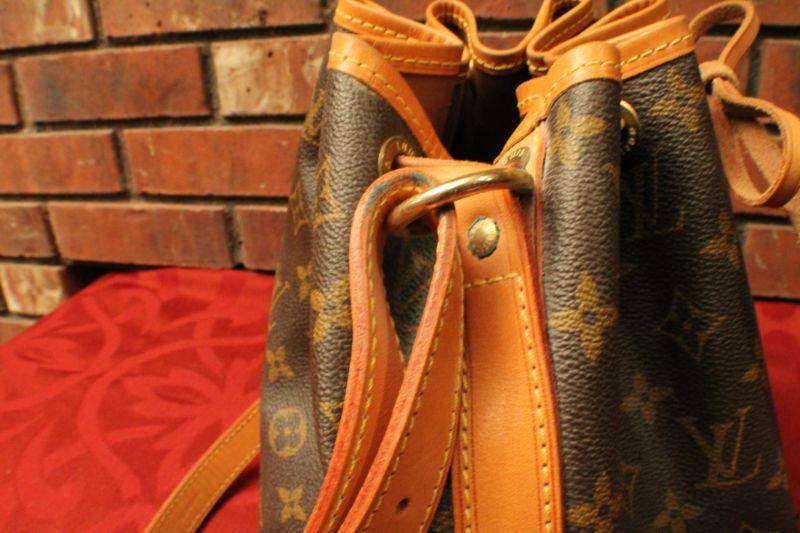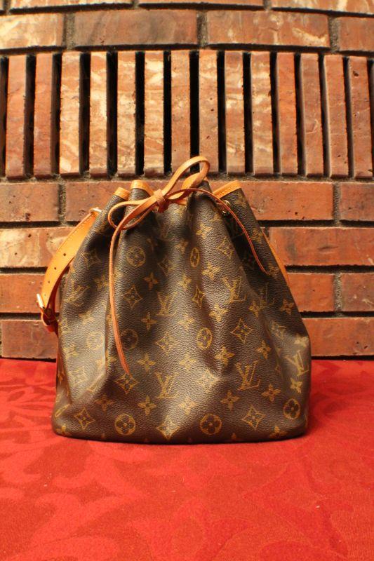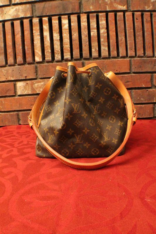 LOT #308: Louis Vuittonâ„¢ Brown Leather Monogram Drawstring Purse