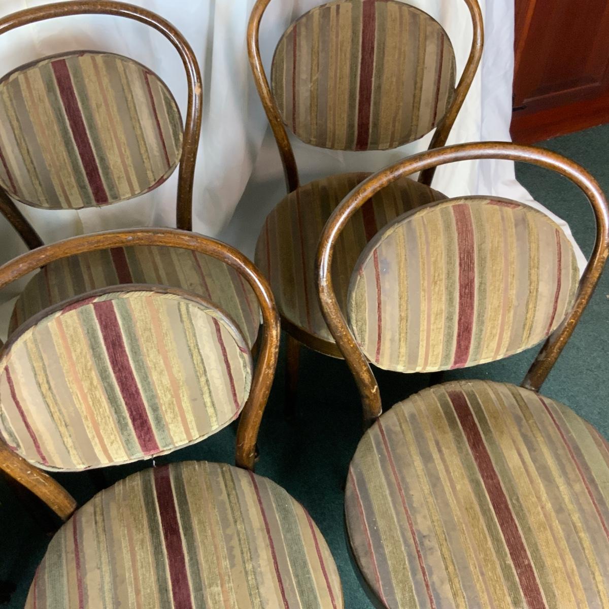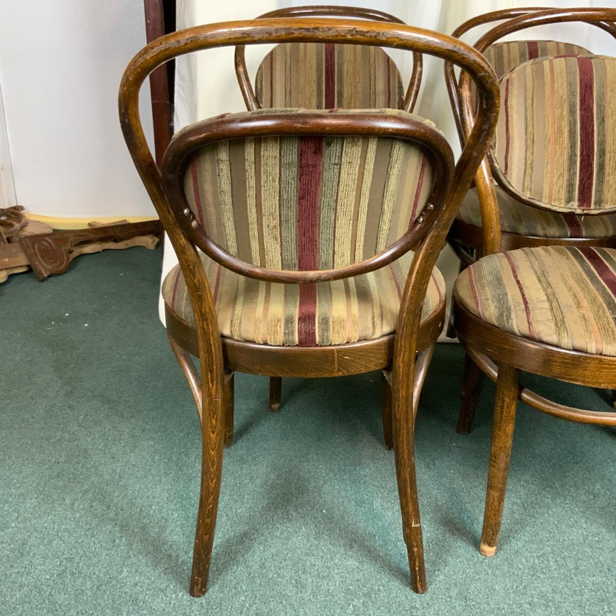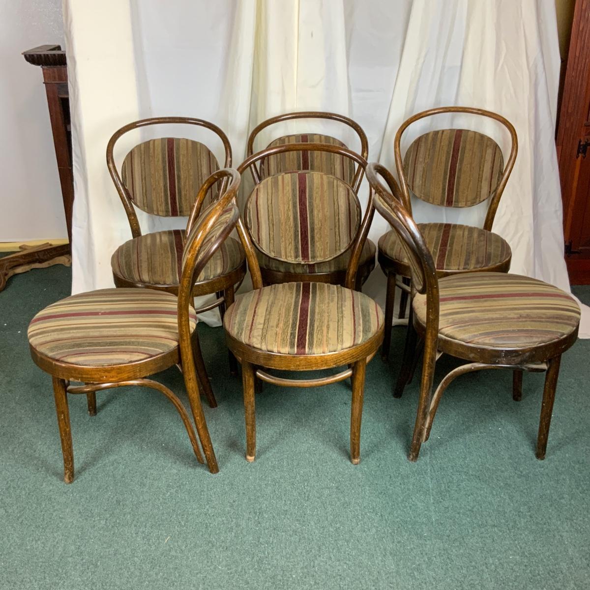 Set of Six Bent Wood Bistro Chairs. They all match and look great! //::\\ Please see photos for details and condition. No attempt has been made to hide any imperfections. All items listed in this auction are warehouse items, and need to be cleaned. A majority of the items need restoration as well. All items are sold AS IS and WITHOUT GUARANTEE. If you are uncertain about an item, DO NOT BID. Due to the nature of this online auction in-person inspection is HIGHLY recommended. All Sales are FINAL. Pick Up Times are FIRM. Please confirm with your own schedule that you can pick up in the scheduled times listed in the Terms and Conditions. Any questions please message the auctioneer. DO NOT Contact The Harp Gallery.