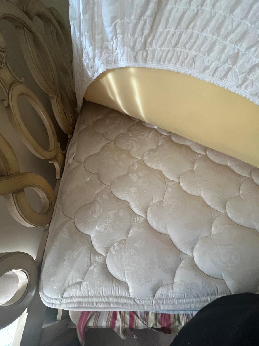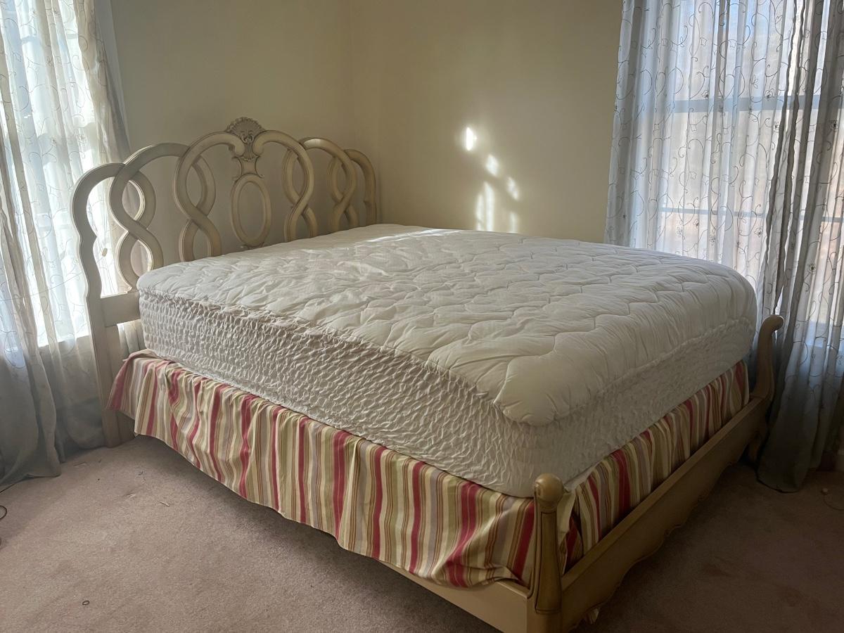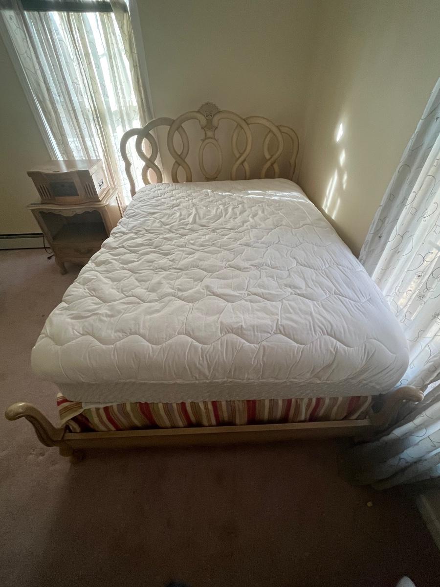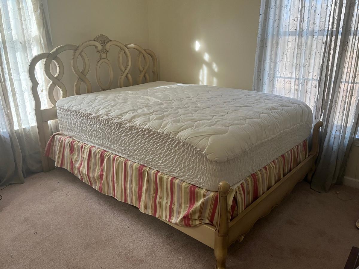 Vintage head board and mattress. Please see all pictures as they are the best representation of the items. The pictures show condition, measurements if taken, and what is included in the lot. Due to the large amount that we photograph and the time frame, we are not always able to take measurements. All items unless noted, are pre-owned and have been used. If you purchased furniture, you must bring help. We do not allow one person to carry large furniture out on their own. Bring help, tools and a truck for the safety of our client’s homes, and your personal safety. Company policy. Thank you.