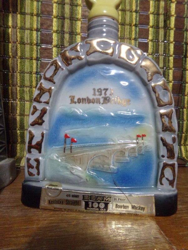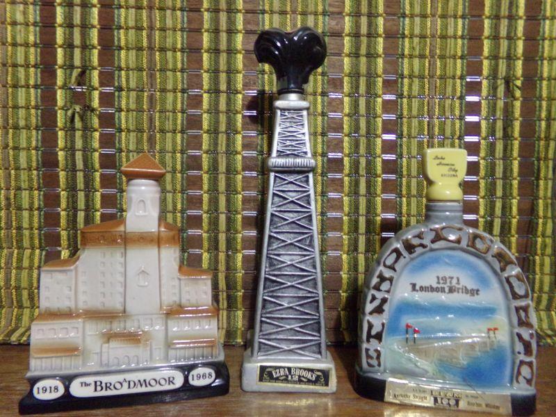 LOT 309  "OIL FIELD RIG", "LONDON BRIDGE" & A TAN BUILDING DECANTERS